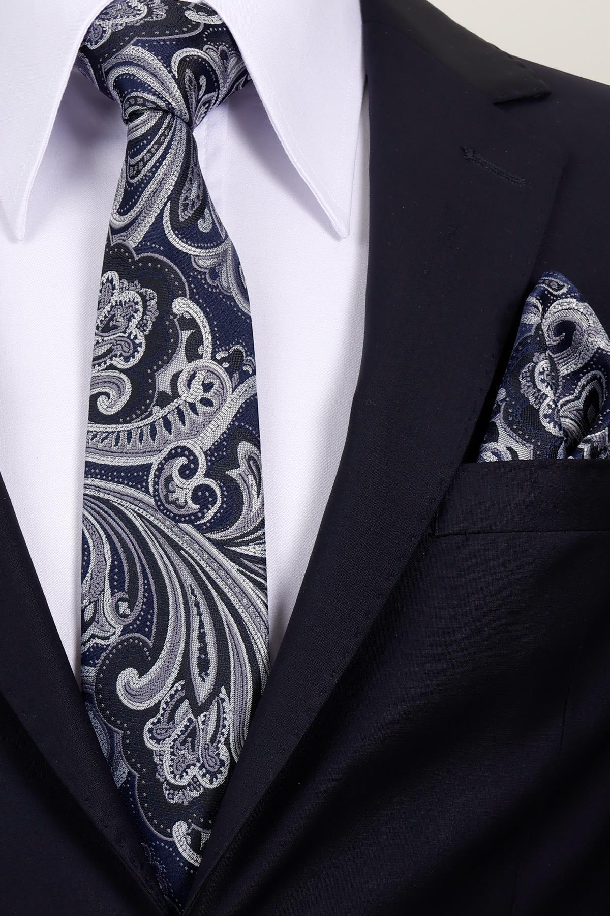 خرید اینترنتی کراوات طرحدار دستساز ۸ سانتیمتری سرمهای – خاکستری با دستمال جیبی برند Esgue اورجینال از Esgue Accessories نمایندگی ترکیه