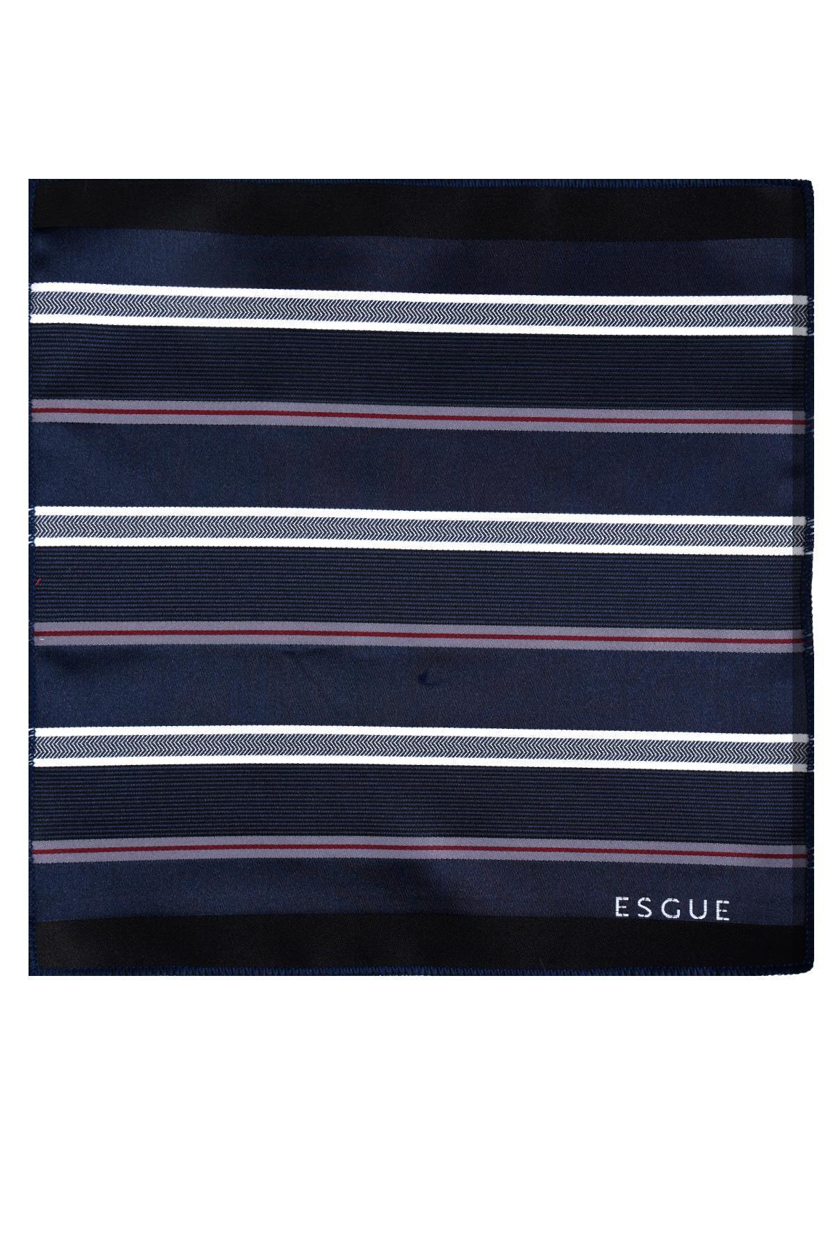 خرید اینترنتی کراوات طرحدار راهراه سفید و سرمهای دستساز ۸ سانتیمتری با دستمال جیبی برند Esgue اورجینال از Esgue Accessories نمایندگی و فروشگاه معتبر ترکیه