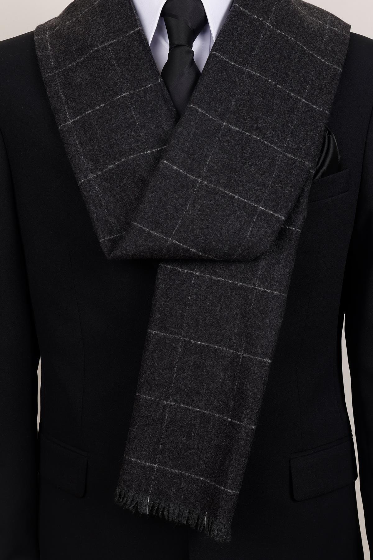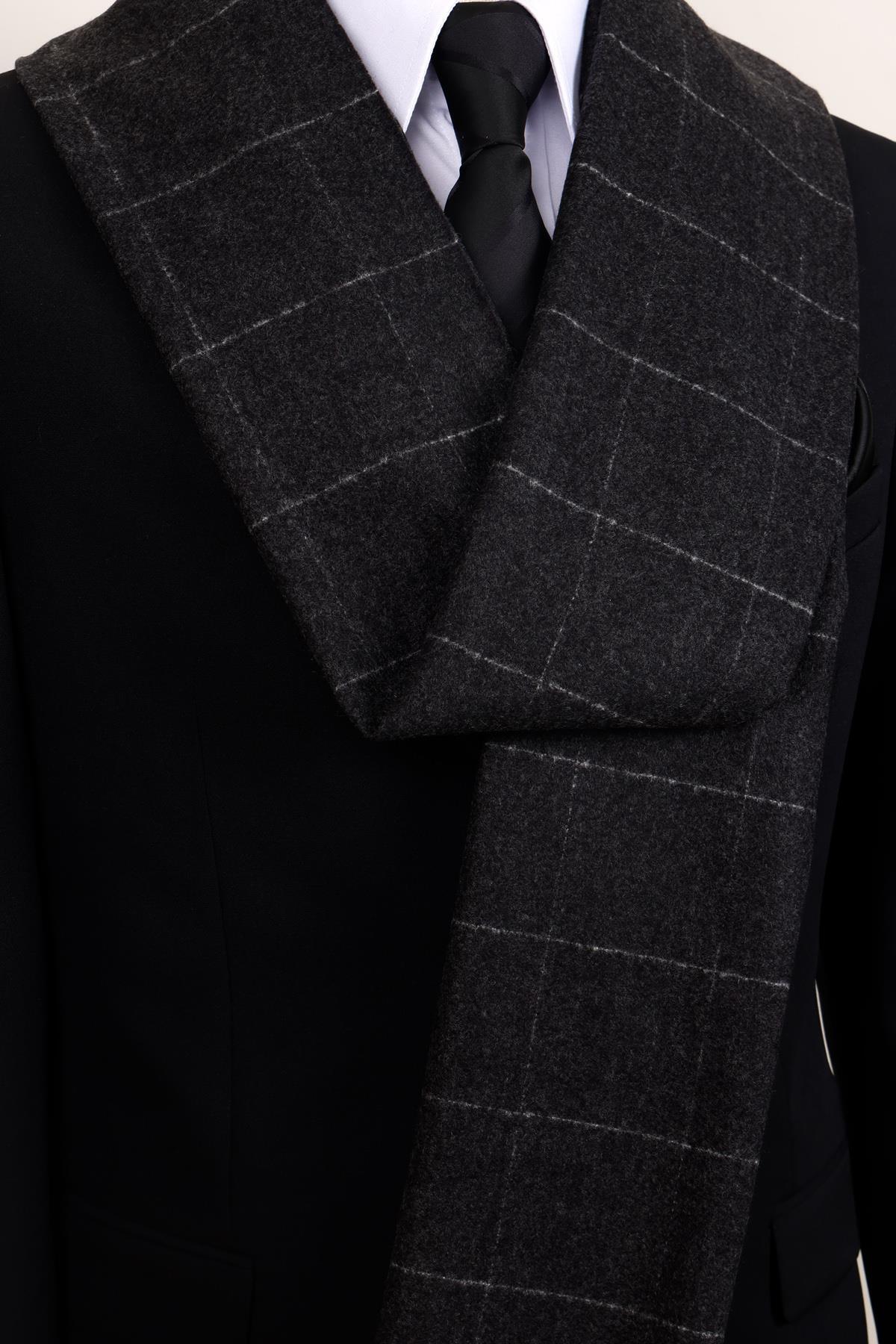شال گردن پشمی چهارخانه آنتراسیت – شال گردن مردانه مینیمالیستی و مردانه مردانه شطرنجی | Esgue ESG200KSK1075