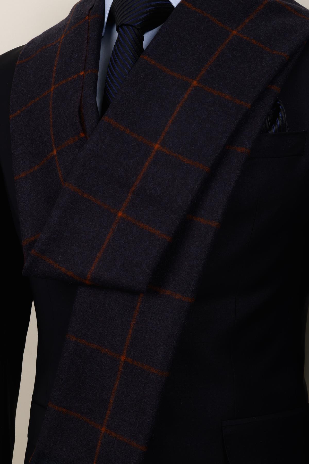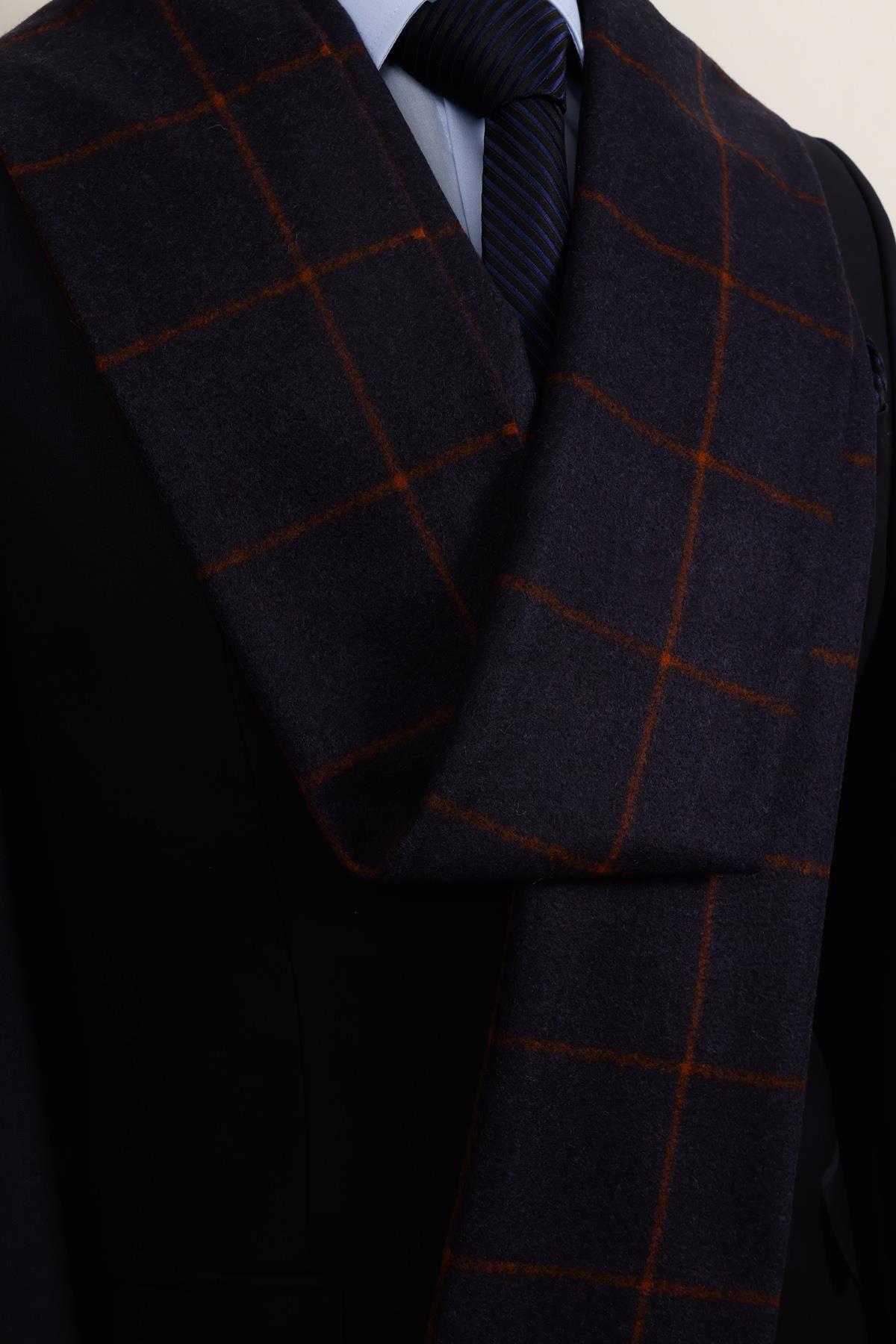 خرید اینترنتی شال پشمی چهارخانه آبی نفتی مسی – شال مردانه شیک و اصیل برند Esgue اورجینال از Esgue Accessories نمایندگی ترکیه