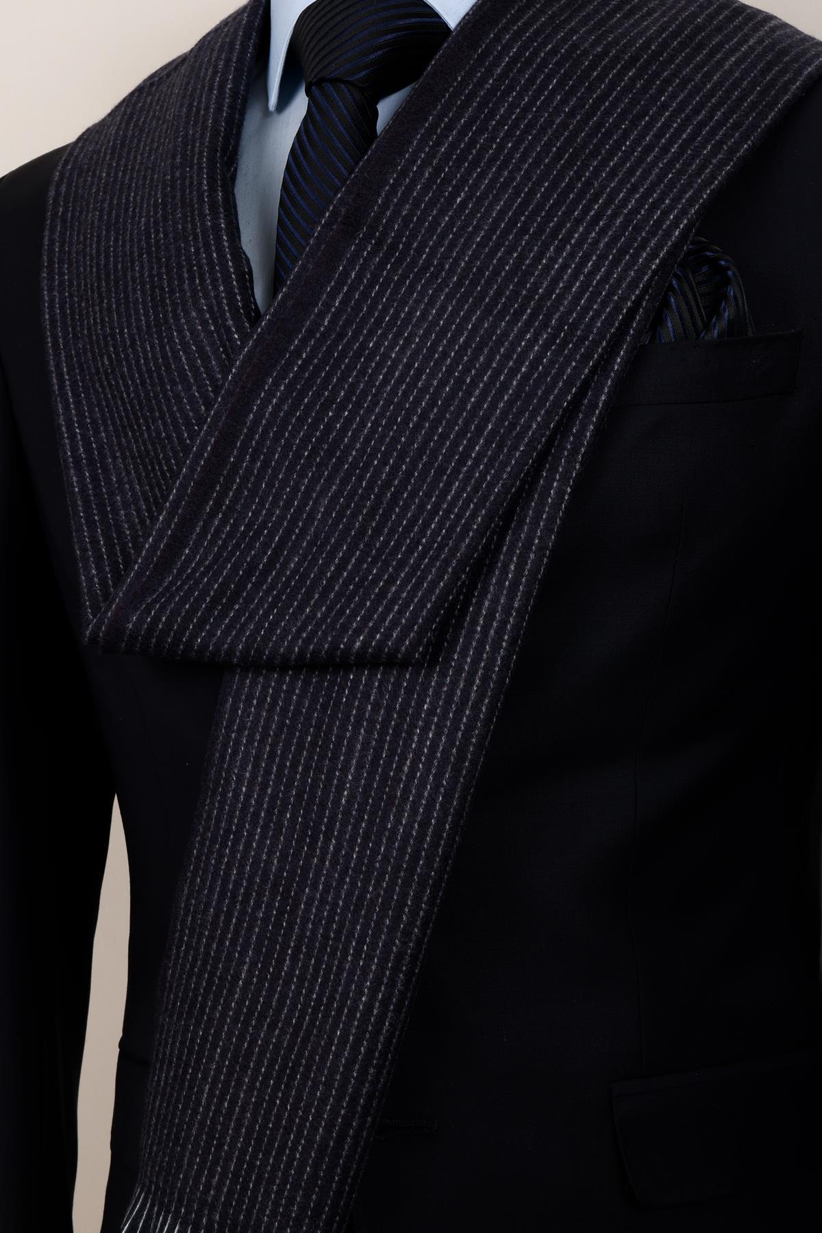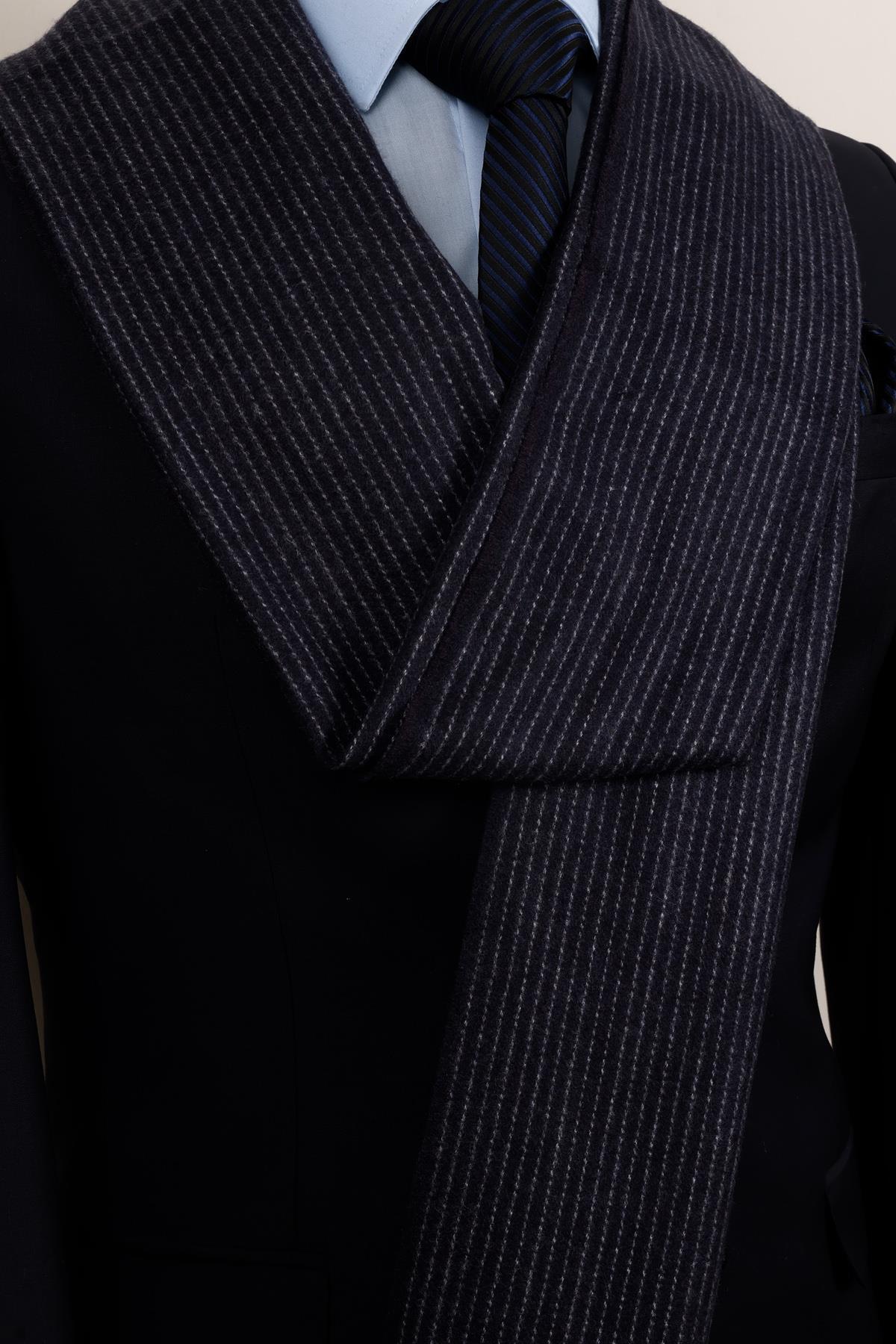 خرید اینترنتی شال پشمی راه راه سرمهای – شال مردانه کلاسیک و مدرن برند Esgue اورجینال از Esgue Accessories نمایندگی ترکیه