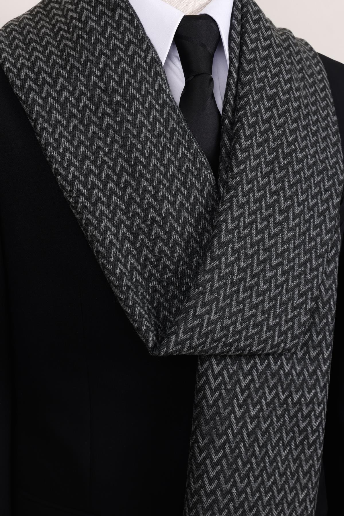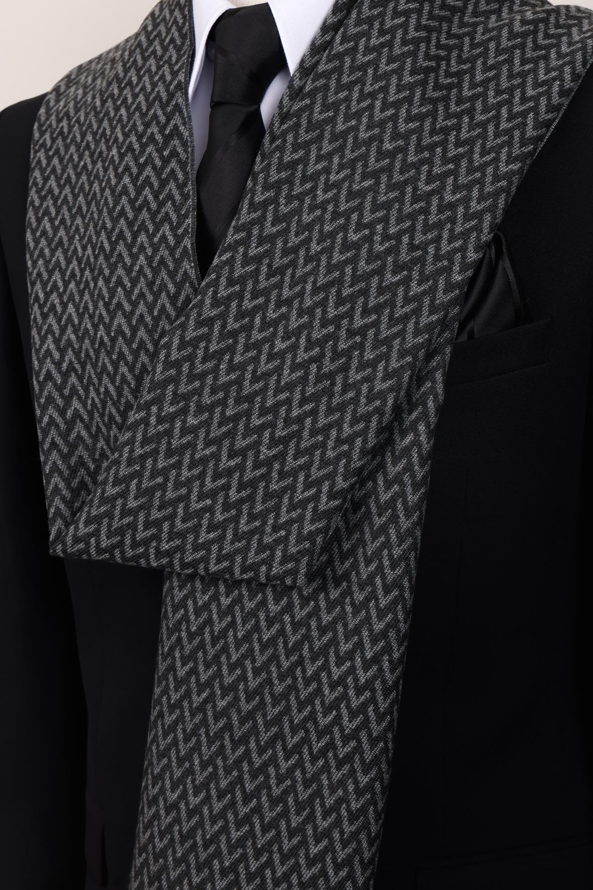 شال گردن مردانه طرح V آنتراسیت – شال گردن نرم با بافت جناغی مردانه طرح ماهی | Esgue ESG200KSK1080