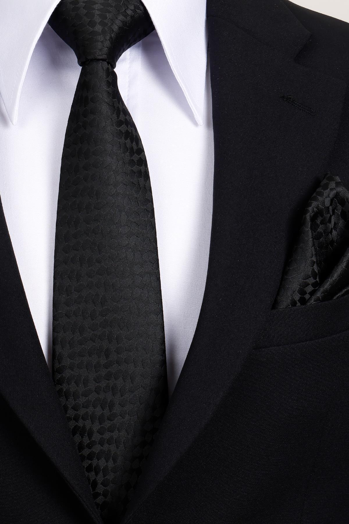 ست هدیه کراوات مشکی، دستمال جیبی و دکمه سرآستین مشکی طرحدار دستساز ۸ سانتیمتری HSET:100 مردانه طرح دار | Esgue ESG300HES1183
