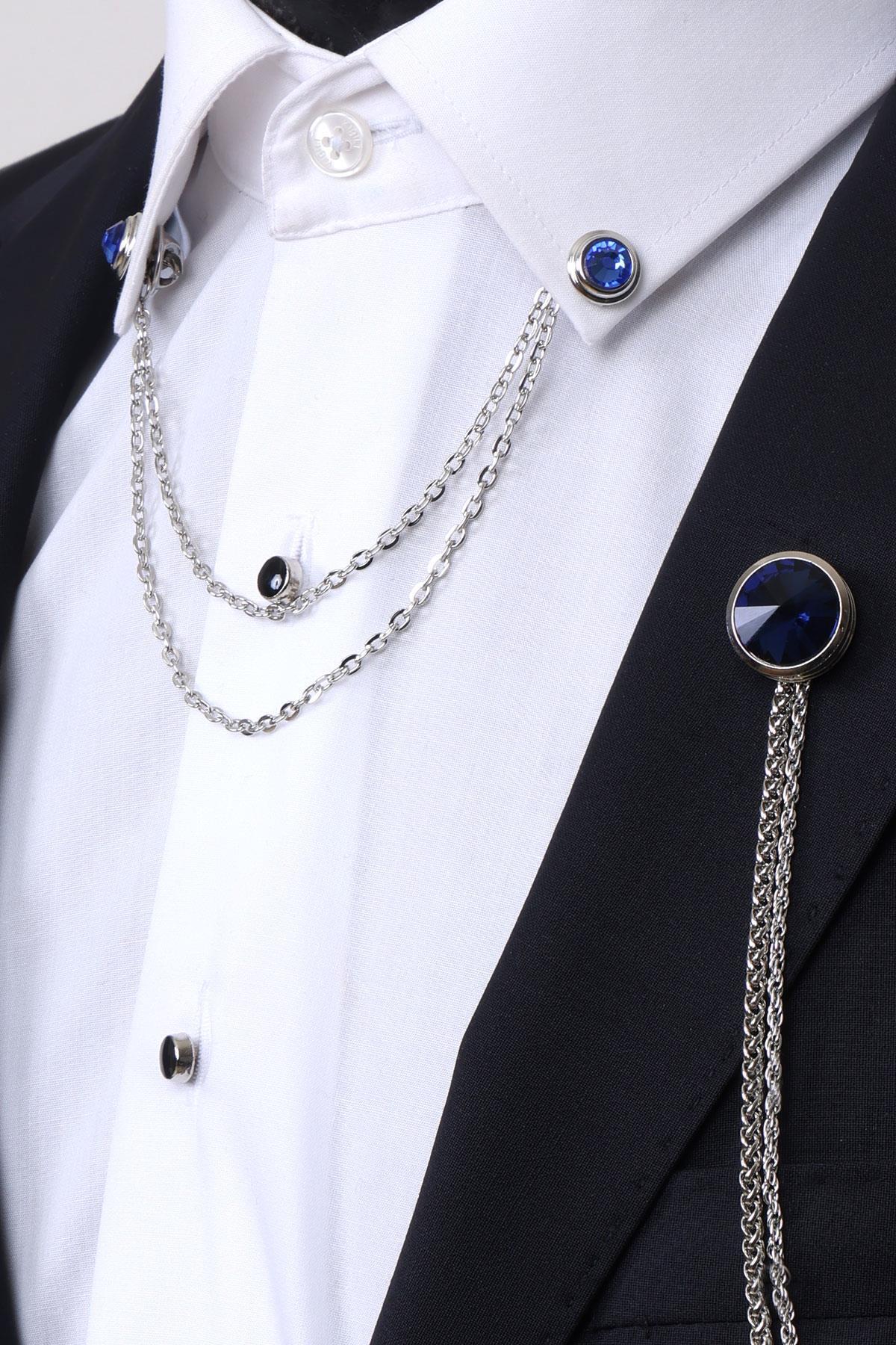 خرید اینترنتی زنجیر کت و پیراهن یقه نقره ای رنگ آبی سرمه ای برند Esgue اورجینال از Esgue Accessories نمایندگی ترکیه