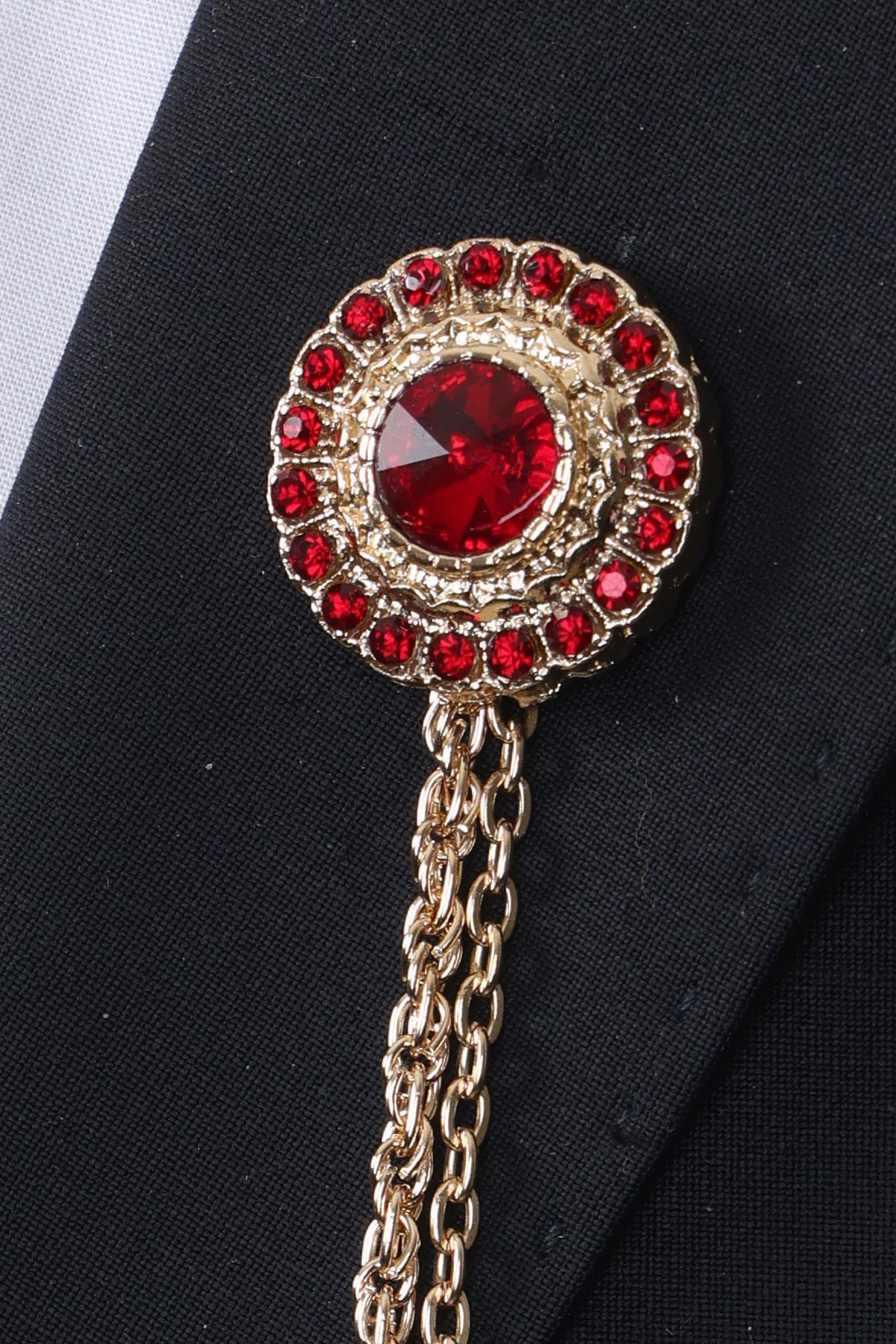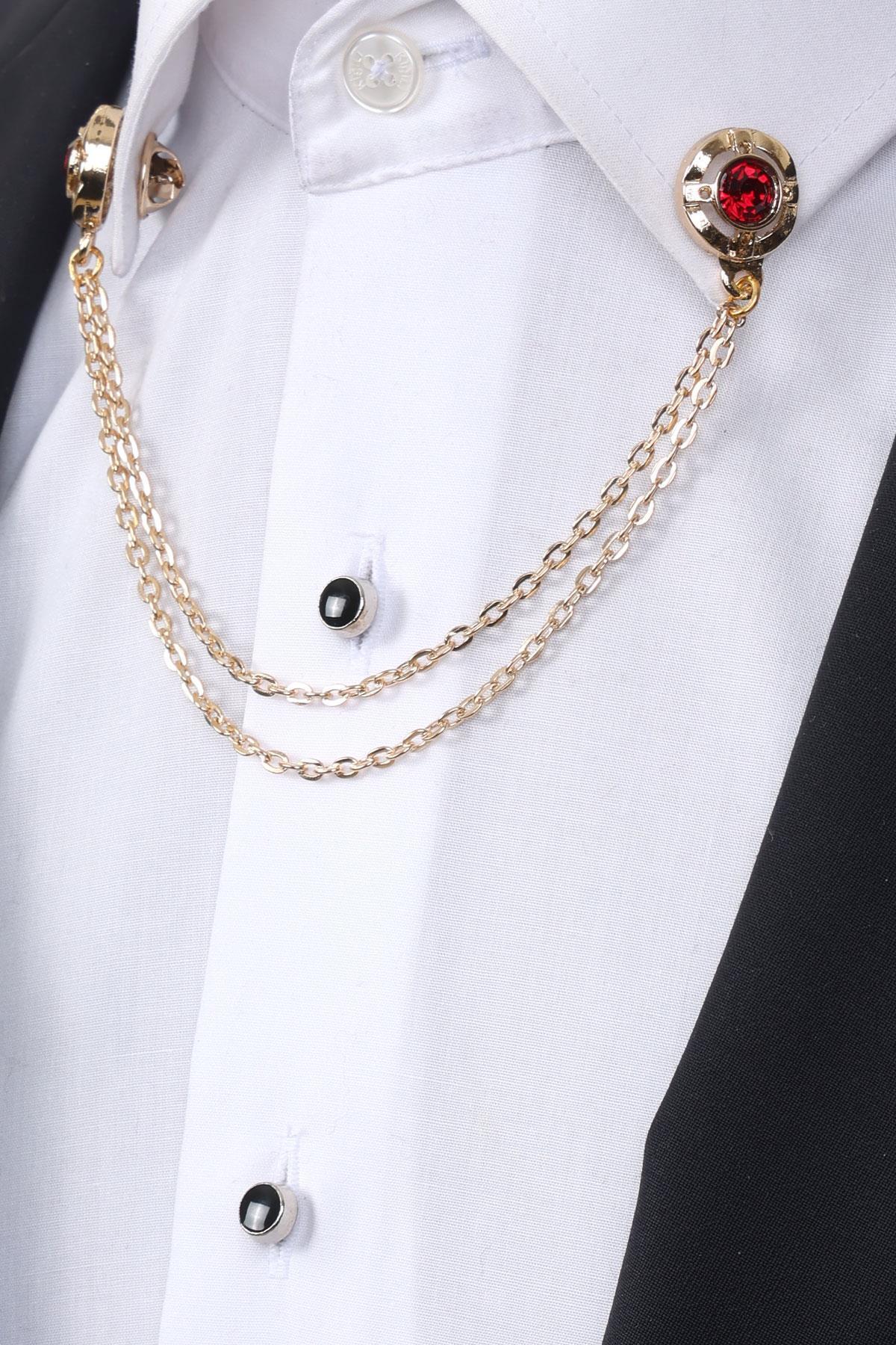 خرید اینترنتی ست سنجاق کت و یقه پیراهن سنگ قرمز رنگ طلایی برند Esgue اورجینال از Esgue Accessories نمایندگی ترکیه