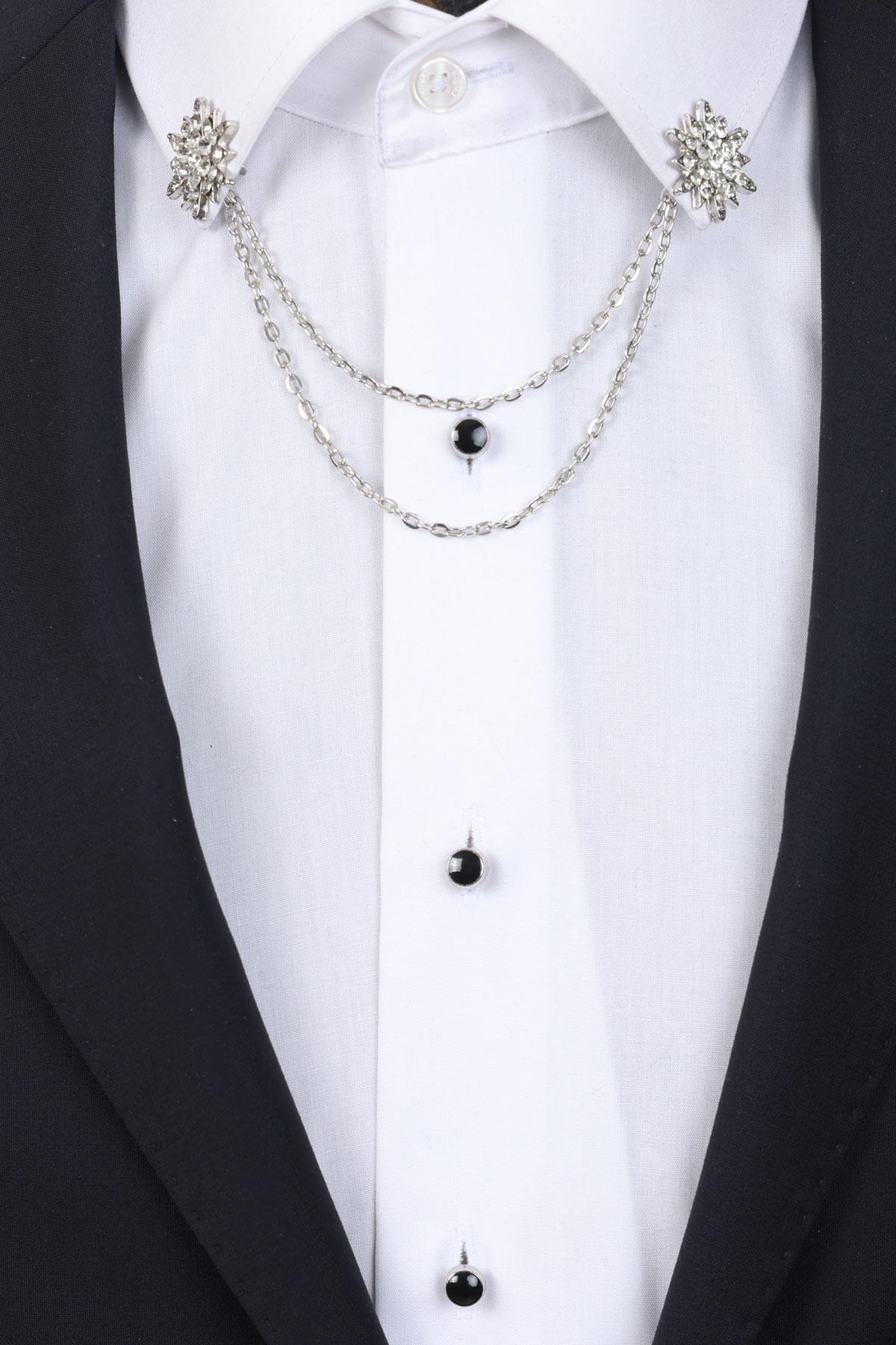 خرید اینترنتی سنجاق یقه پیراهن زنجیر سنگ سفید رنگ نقره ای برند Esgue اورجینال از Esgue Accessories نمایندگی ترکیه