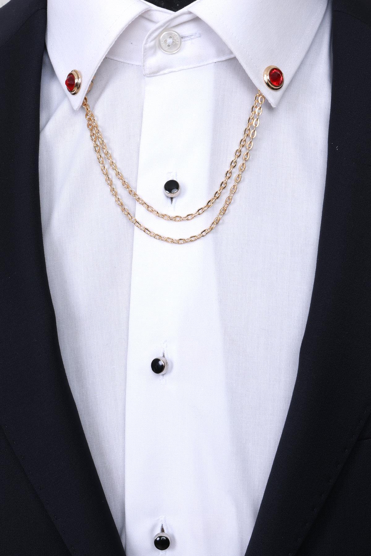 خرید اینترنتی یقه پیراهن زنجیر سنگ سفید طرح حلقه طلایی سنجاق سینه برند Esgue اورجینال از Esgue Accessories نمایندگی ترکیه