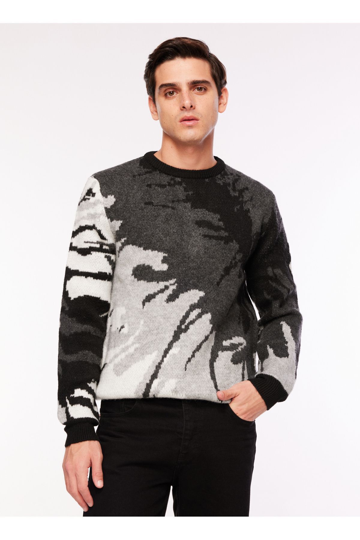 خرید اینترنتی پلیور مردانه یقه گرد، طرح ژاکارد مشکی، مدل F3WM-KZK150 برند فابریکا Fabrika اورجینال از Fabrika Boyner نمایندگی ترکیه