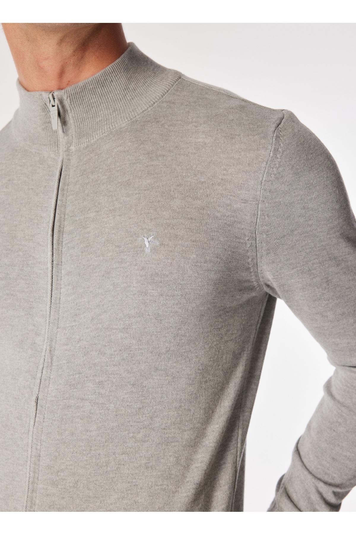 این ژاکت بافتنی یقه ایستاده خاکستری ملانژ فابریکا با برش راحت و طراحی شیک خود، انتخابی عالی برای هر کمد لباسی است.