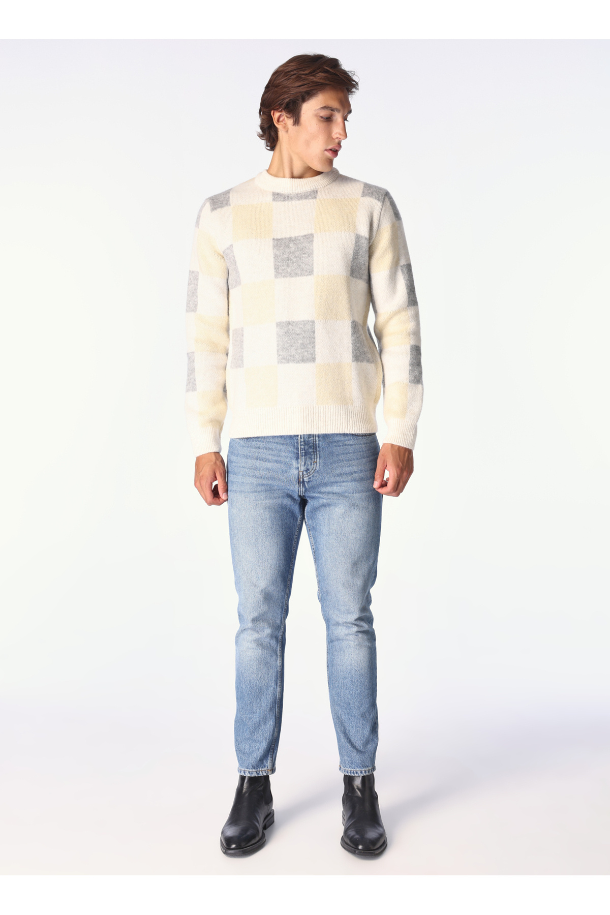 خرید اینترنتی پلیور مردانه چهارخانه یقه گرد طرح Ecru مدل F4WM-KZK 2723 برند فابریکا Fabrika اورجینال از Fabrika Boyner نمایندگی ترکیه