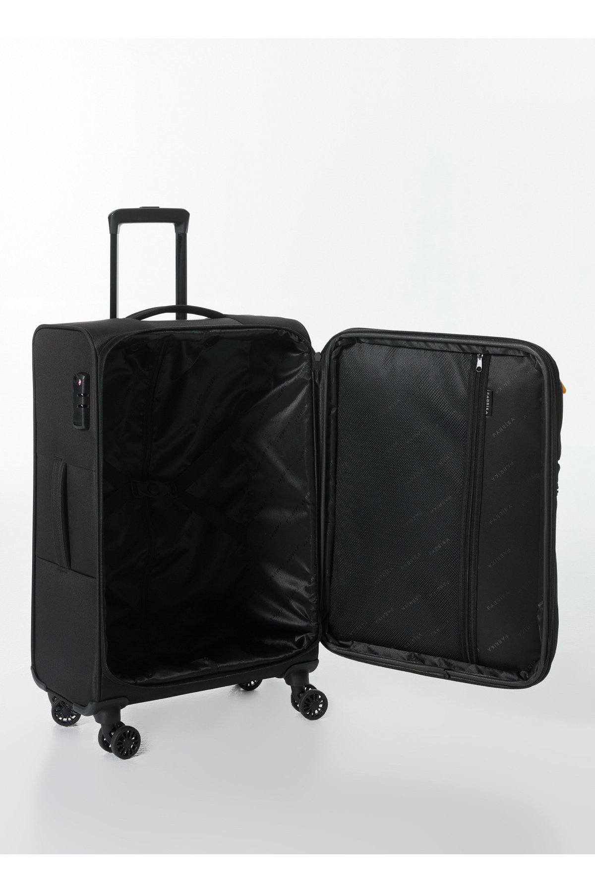 چمدان چرخدار پارچهای مشکی فابریکا مدل 029 سایز بزرگ، هم ظرافت و هم کاربردی بودن را برای سفرهای شما ارائه میدهد.