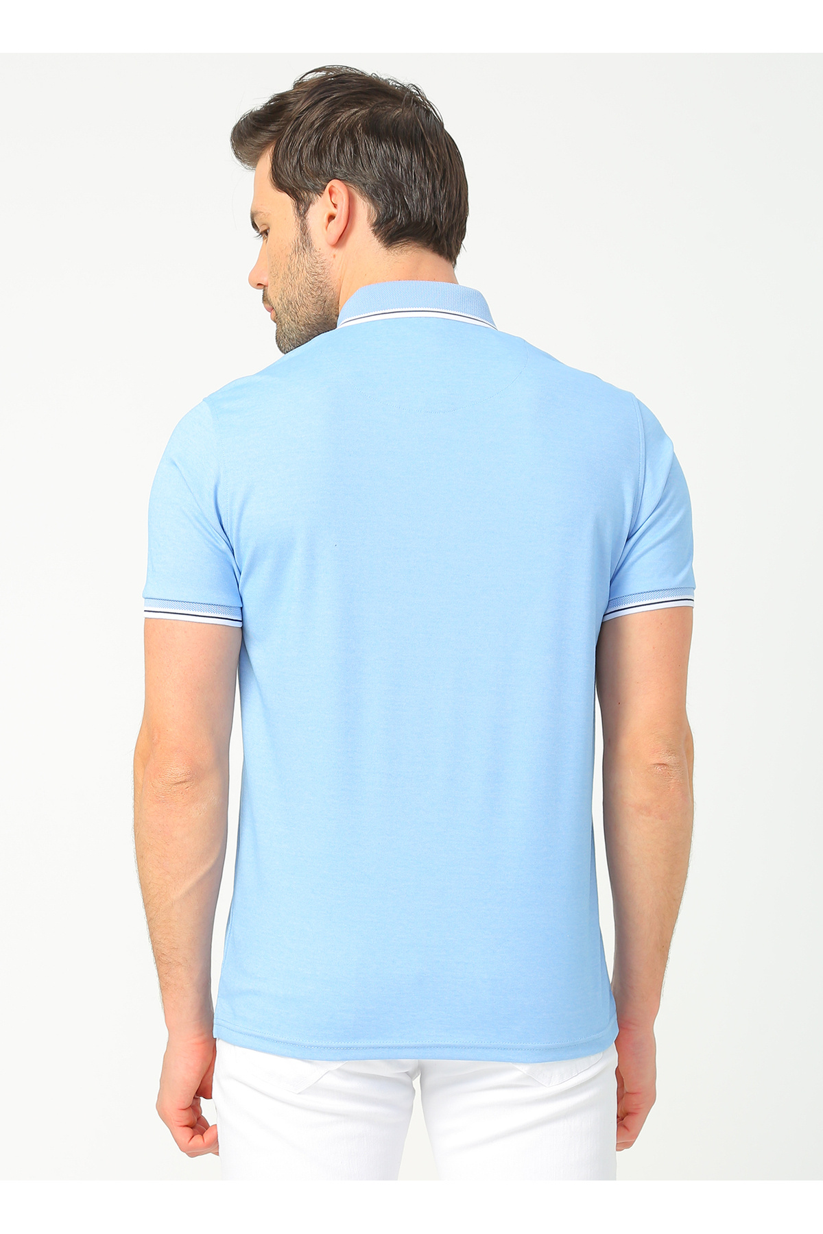 این تیشرت یقهدار آبی یکی از طرحهای باکیفیت و راحت فابریکا کامفورت است.