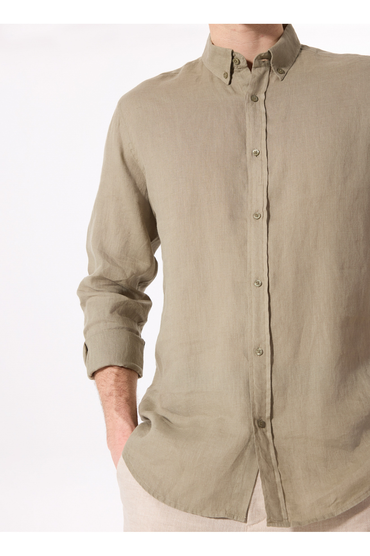 خرید اینترنتی پیراهن مردانه خاکی دکمه‌دار سایز معمولی، ۱۰۰٪ کتان، مدل F5SM-GML 2767 برند فابریکا Fabrika اورجینال از Fabrika Boyner نمایندگی ترکیه
