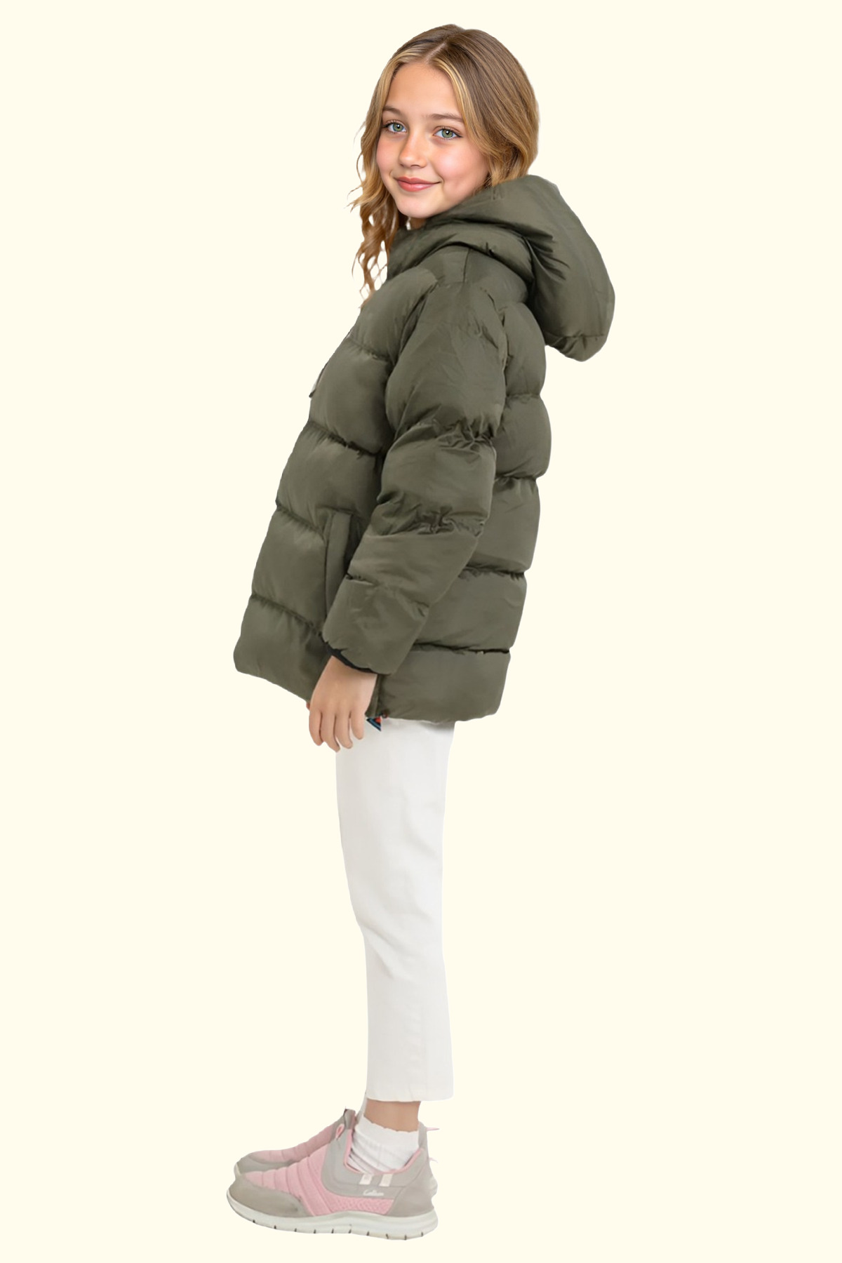 خرید اینترنتی کاپشن زمستانی دخترانه، آستر پشمی، کلاهدار، ضد آب، ضد باد، پدگذاری شده و جیبدار برند Firststops اورجینال از First Stops نمایندگی ترکیه