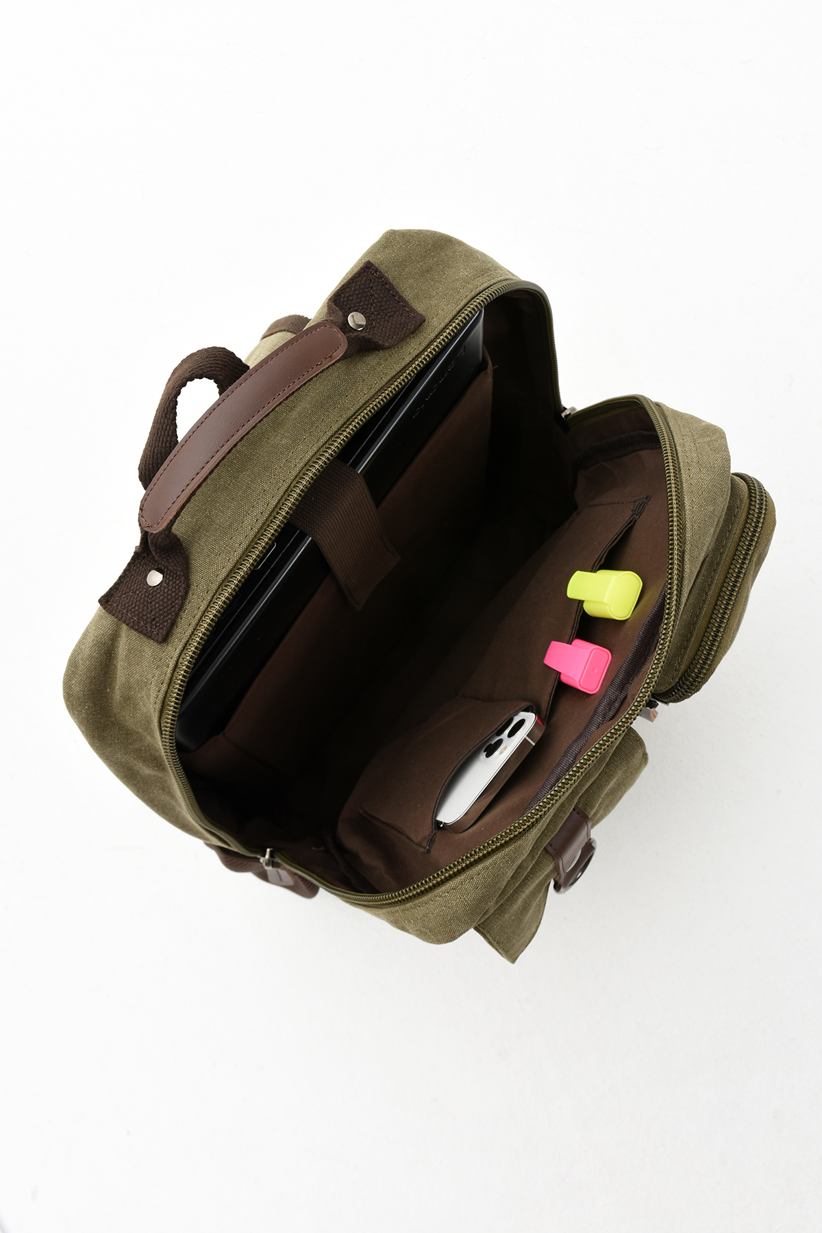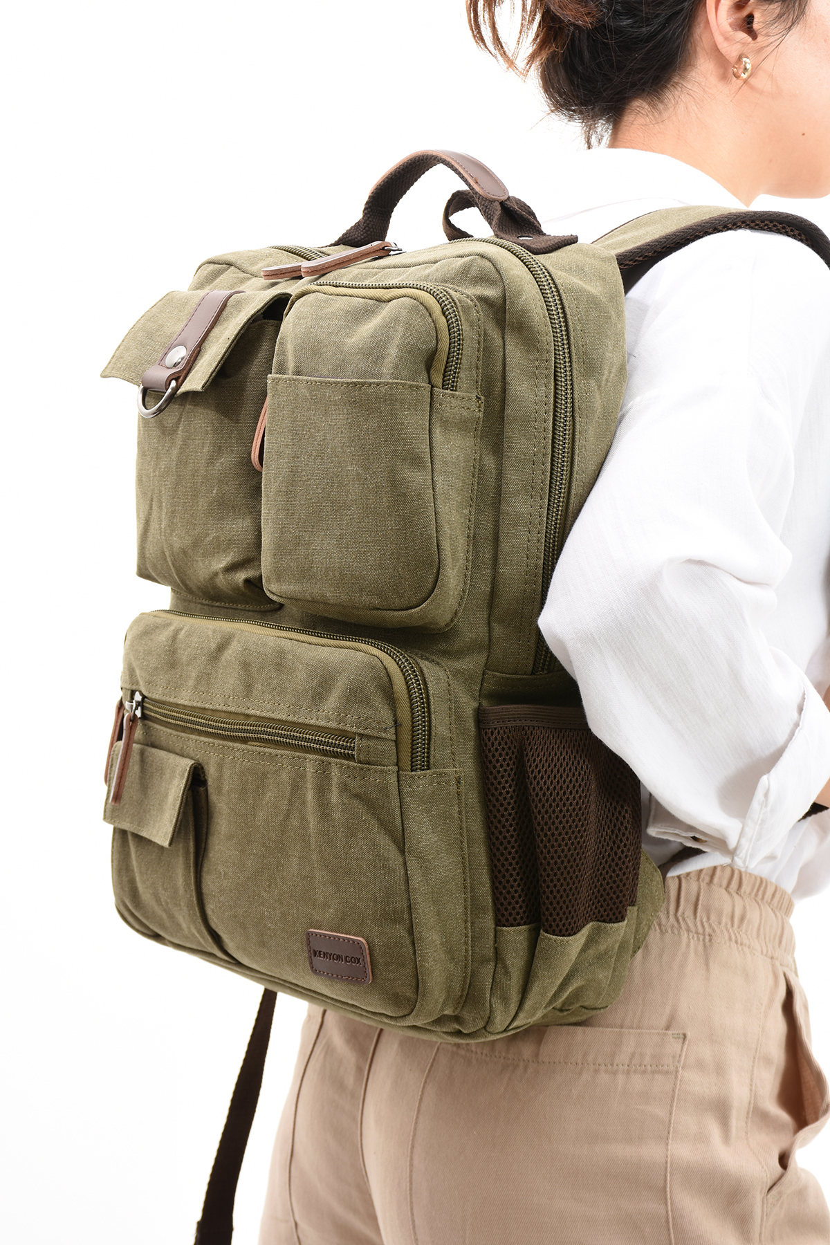 کوله پشتی برزنتی eba-8678 با محفظه لپ تاپ، کمپینگ، مسافرتی، کیف مدرسه، چند محفظه، خاکی زنانه راسته | Fiyaka 24ubyh0022