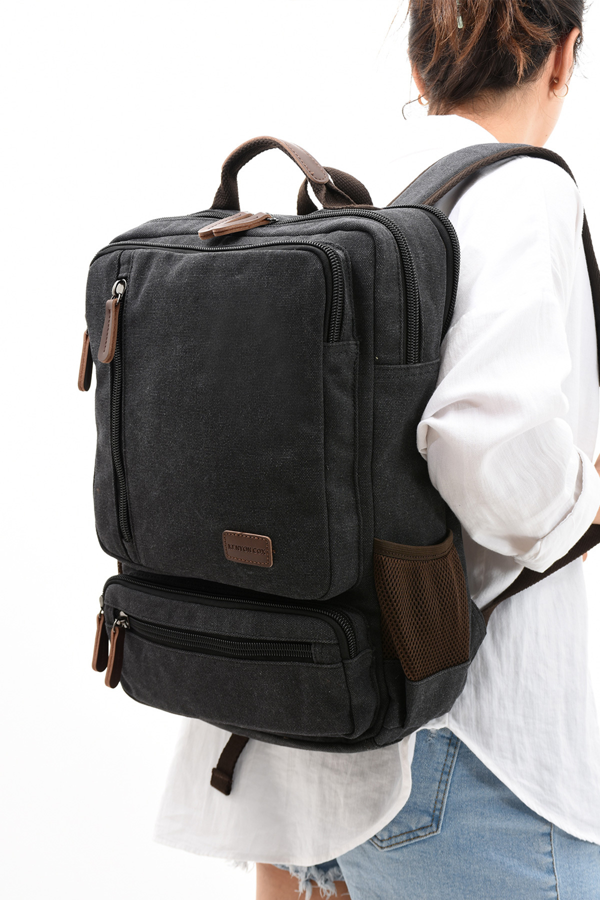 کوله پشتی برزنتی eba-8814 با محفظه لپ تاپ، کیف کمپینگ، مسافرتی، مدرسه، مشکی زنانه راسته | Fiyaka 24ubyh0023