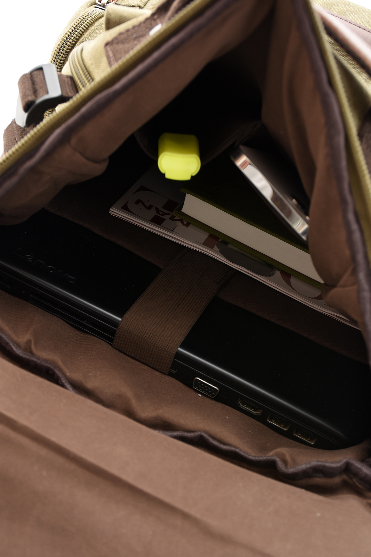 کوله پشتی برزنتی eba-8831 با محفظه لپ تاپ، کیف کوهنوردی مسافرتی کمپینگ خاکی زنانه راسته | Fiyaka 24ubyh0025