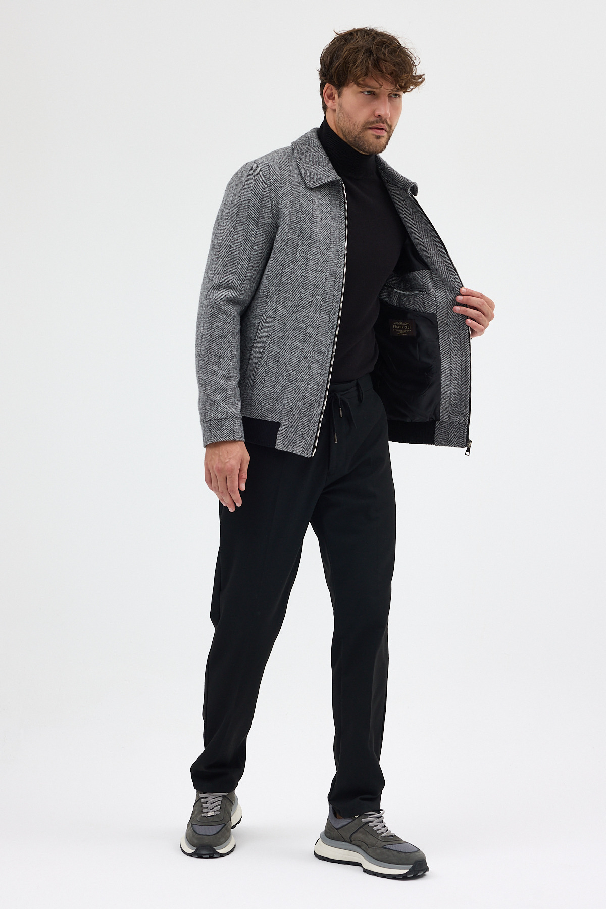 خرید اینترنتی کاپشن کوتاه کشمیری مردانه باتیستا خاکستری با دامن کشباف زیپدار برند فراپلی Frappoli اورجینال از Frappoli نمایندگی ترکیه