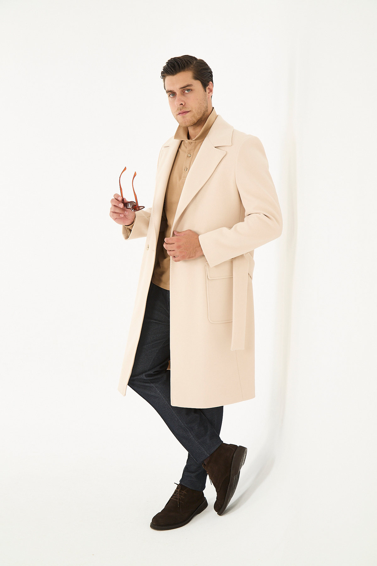 خرید اینترنتی پالتو مردانه بلند کشمیری کمربنددار، سایز معمولی برند فراپلی Frappoli اورجینال از Frappoli نمایندگی ترکیه