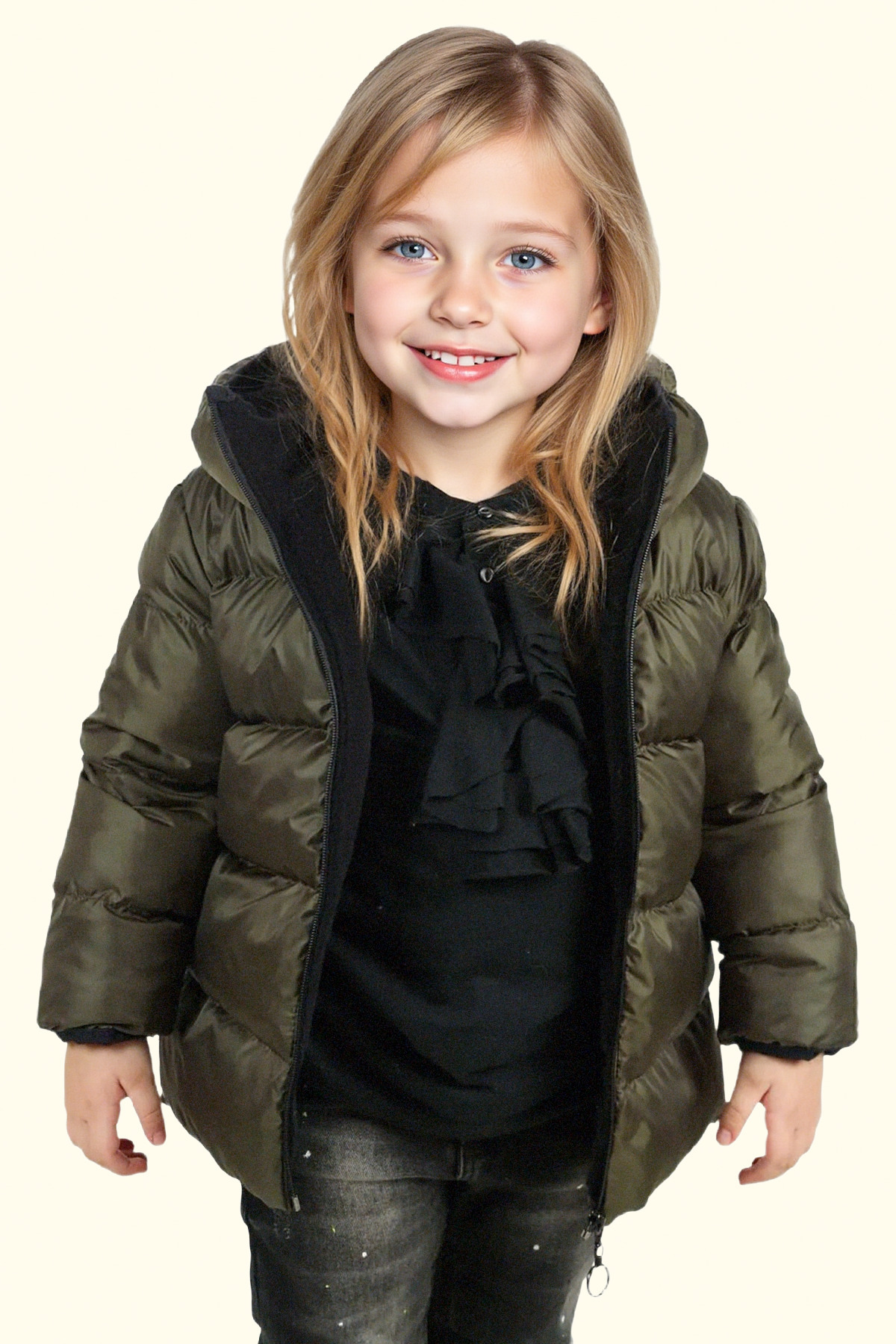 این کاپشن که با رنگ خاکی خود متمایز است، تضمین میکند که کودکان در ماههای زمستان هم شیک و هم گرم بمانند.