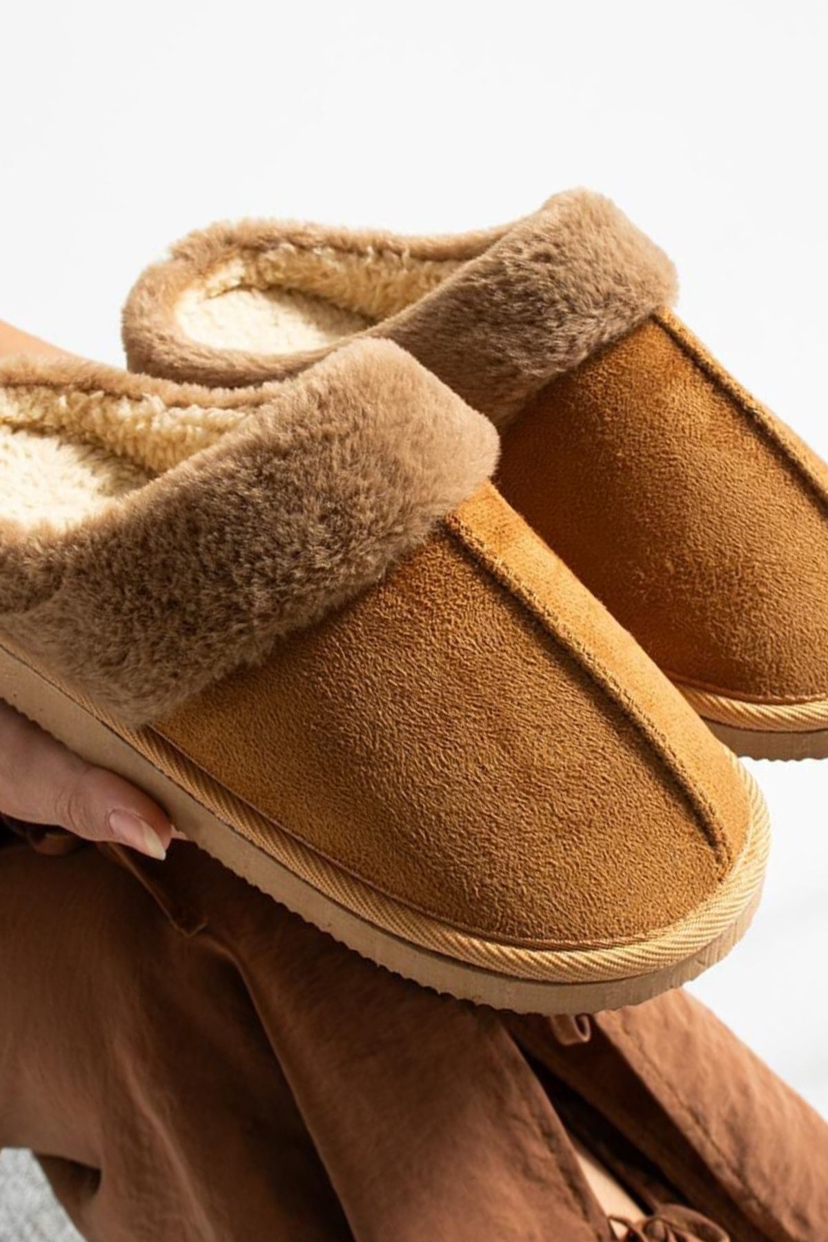 خرید اینترنتی دمپایی خانگی Mabes مدل Tan Suede خزدار یقهدار نیمه بسته با کفی بیصدا برند FUGA MODA اورجینال از FUGA MODA نمایندگی و فروشگاه معتبر ترکیه