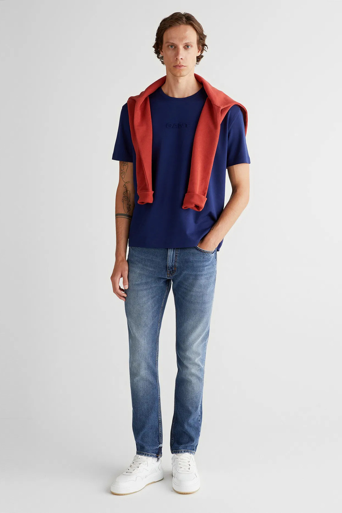خرید اینترنتی تیشرت یقه گرد مردانه طرح آبی برجسته برند گنت Gant اورجینال از LVS BRANDS نمایندگی ترکیه