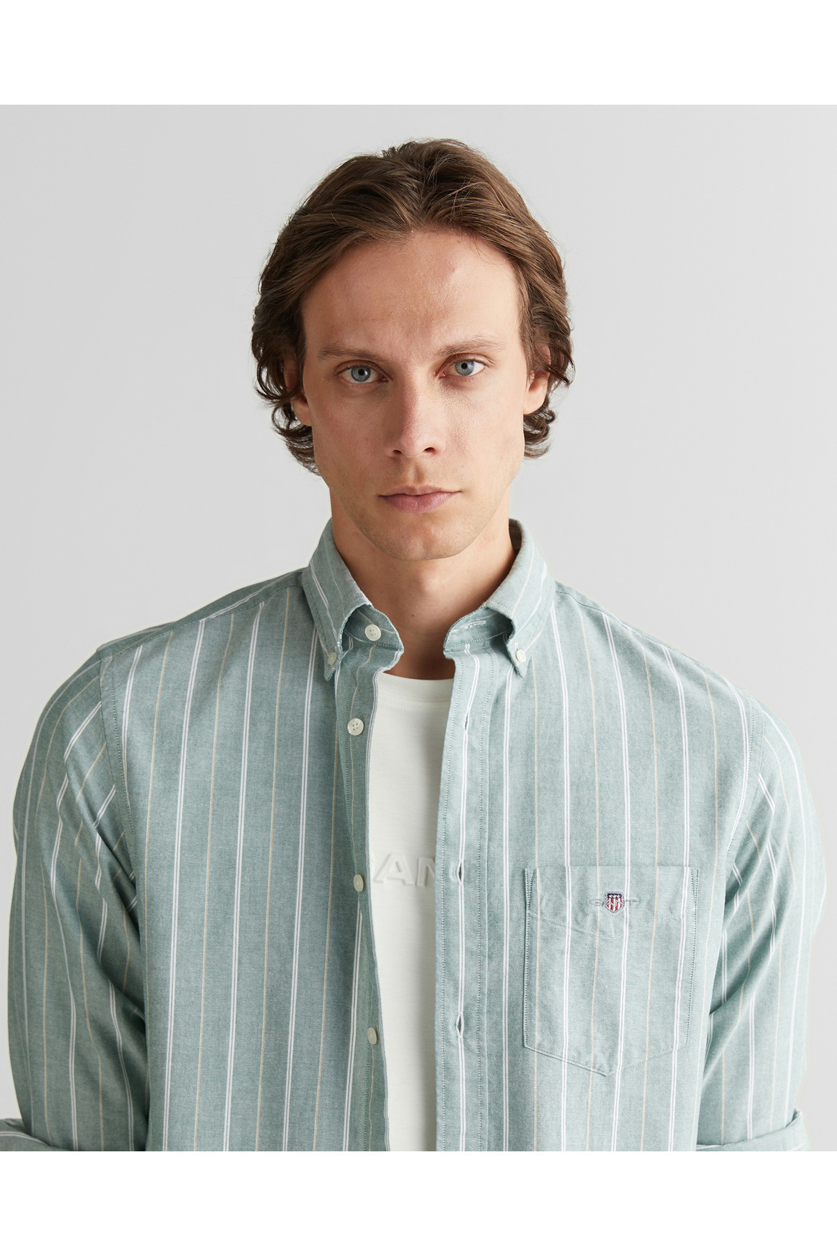 خرید اینترنتی پیراهن مردانه آکسفورد راه راه یقه دکمه دار سبز معمولی برند گنت Gant اورجینال از Gant نمایندگی ترکیه
