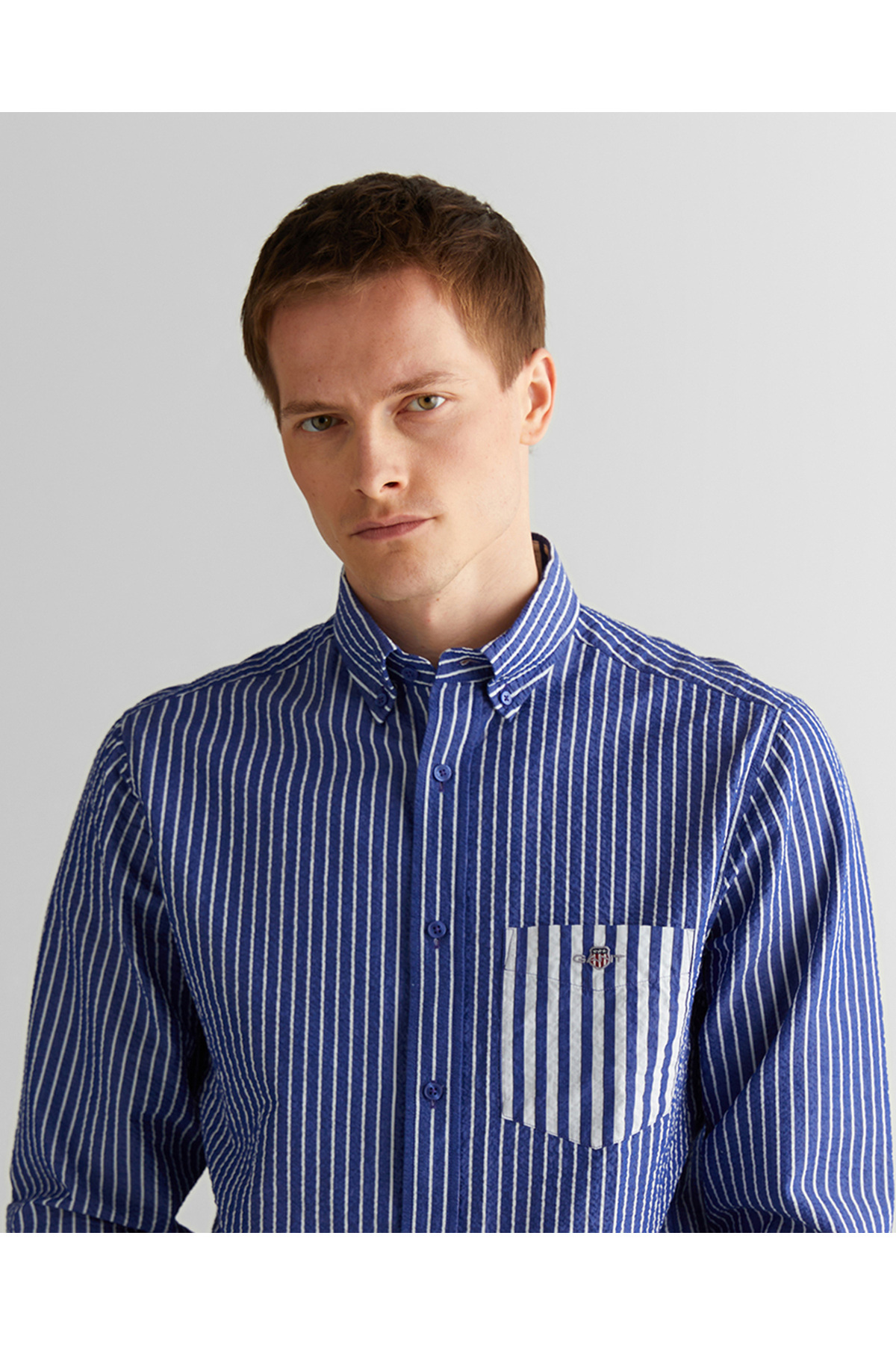 خرید اینترنتی پیراهن مردانه یقه دکمه‌دار سرمه‌ای راه‌راه برند گنت Gant اورجینال از Gant نمایندگی ترکیه