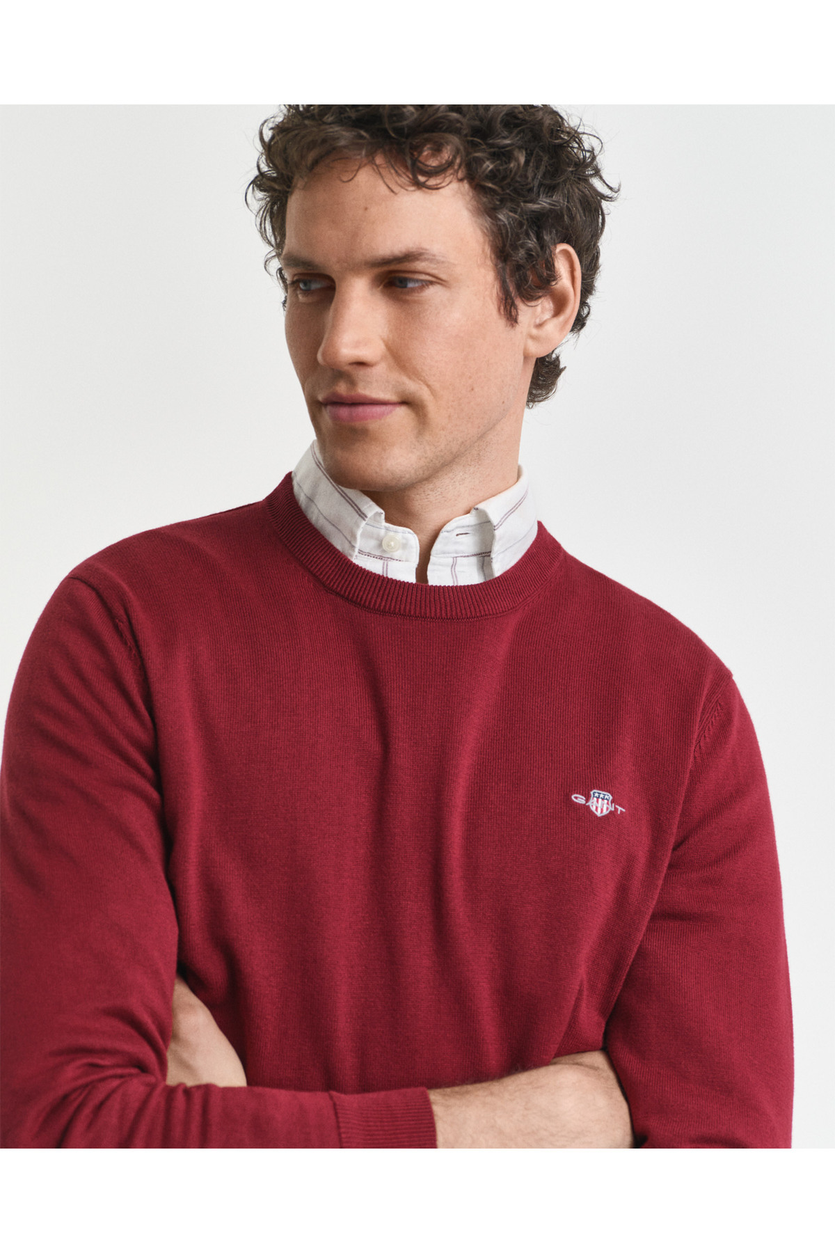 خرید اینترنتی ژاکت یقه گرد مردانه سرمهای رنگ بورگوندی معمولی برند گنت Gant اورجینال از Gant نمایندگی ترکیه