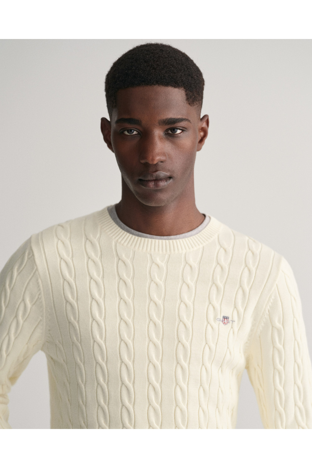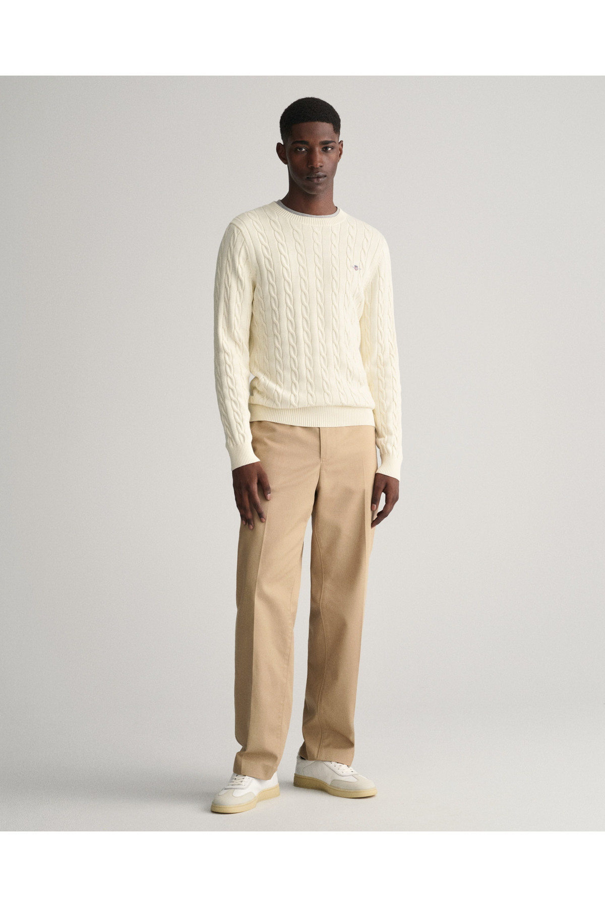 خرید اینترنتی ژاکت بافتنی یقه گرد مردانه مدل معمولی کرم رنگ برند گنت Gant اورجینال از Gant نمایندگی ترکیه