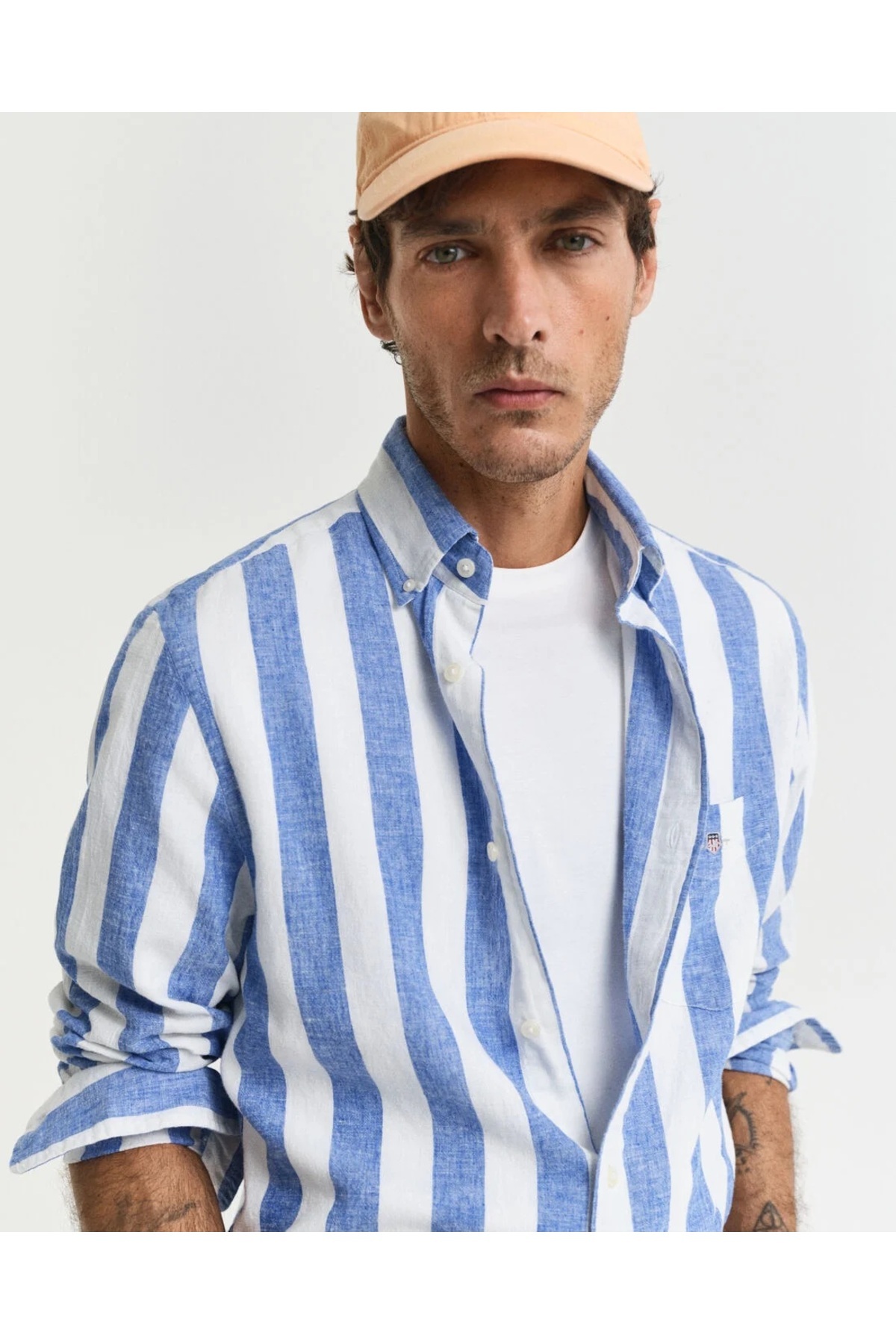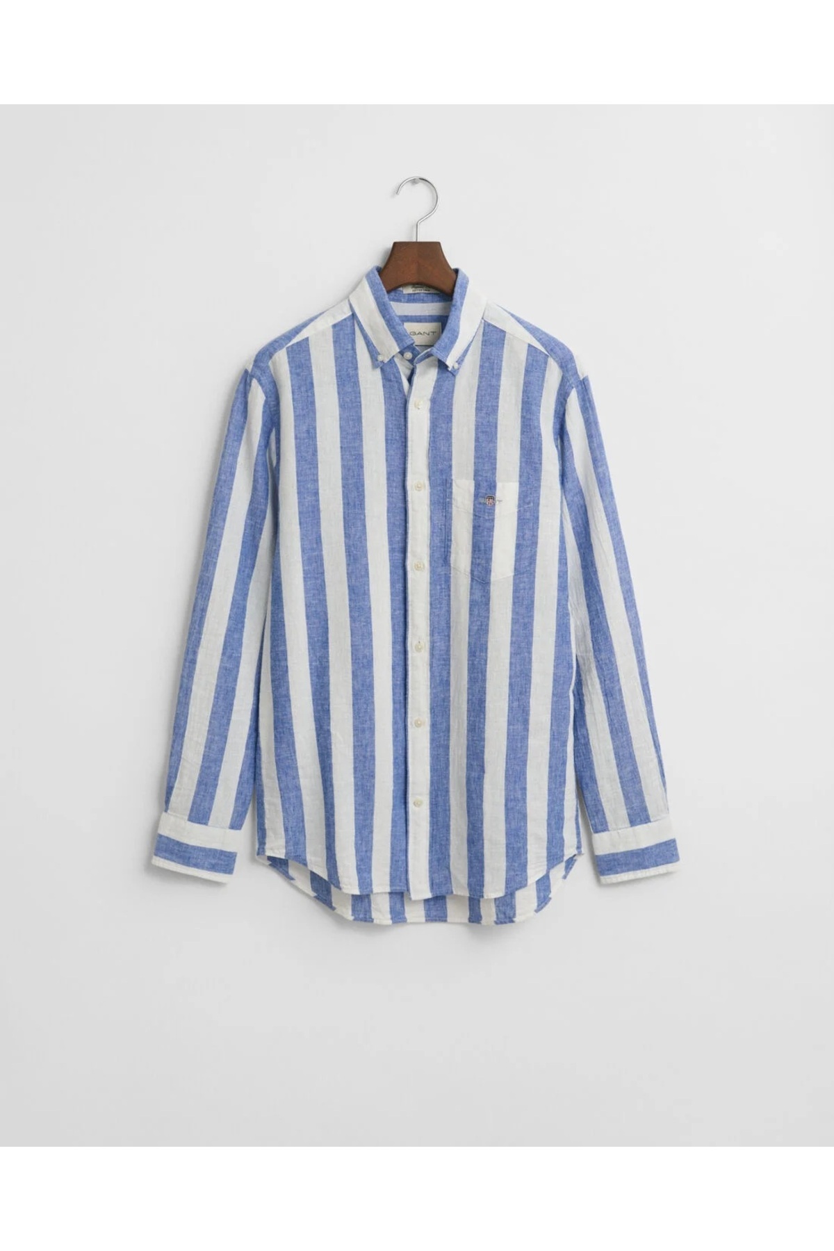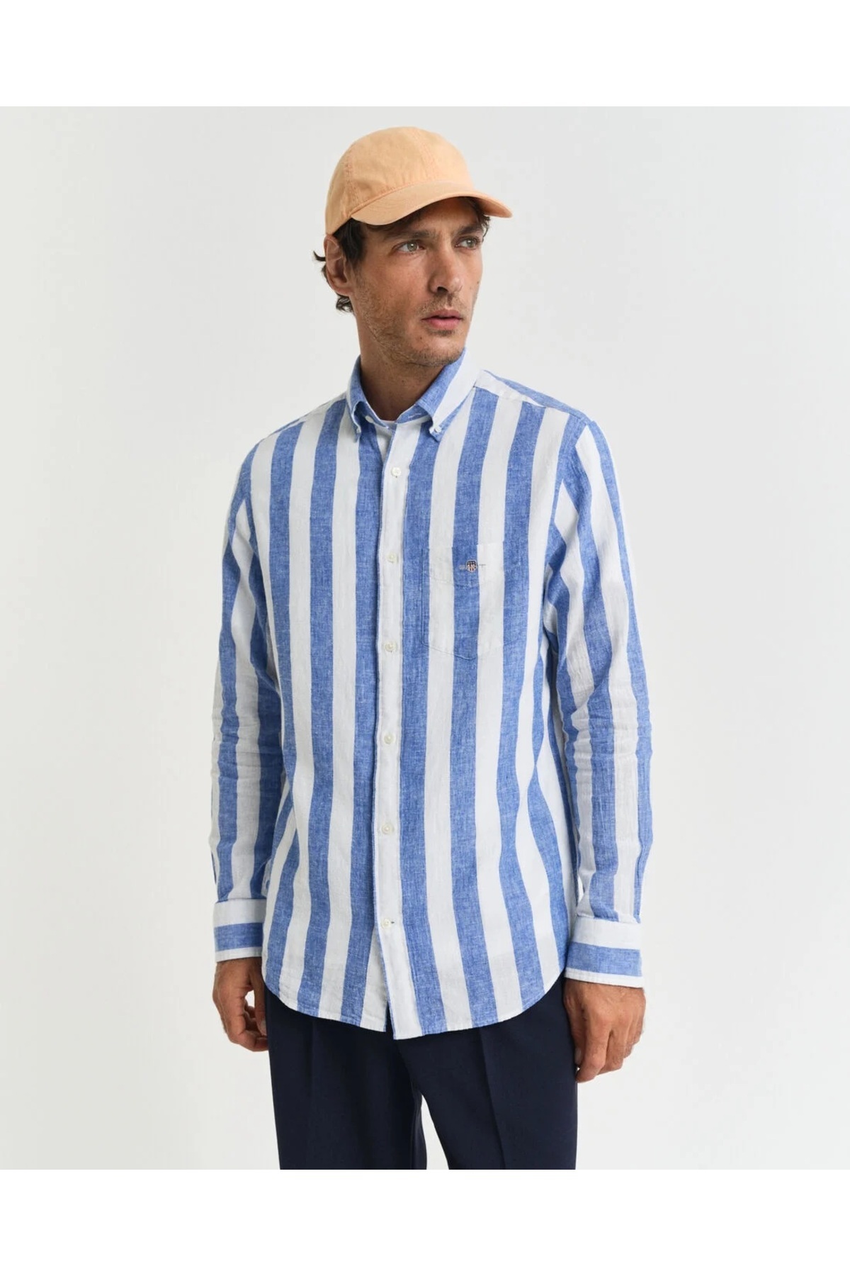 خرید اینترنتی پیراهن مردانه راه راه یقه دکمه دار آبی معمولی برند گنت Gant اورجینال از Gant نمایندگی ترکیه