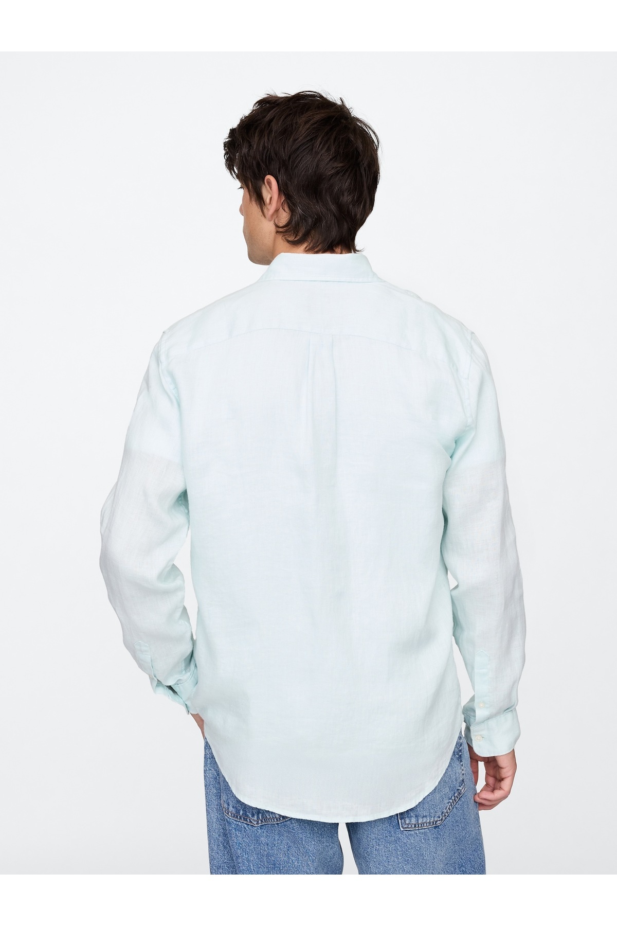 خرید اینترنتی پیراهن مردانه آبی روشن ۱۰۰٪ کتان برند گپ GAP اورجینال از Gap نمایندگی ترکیه