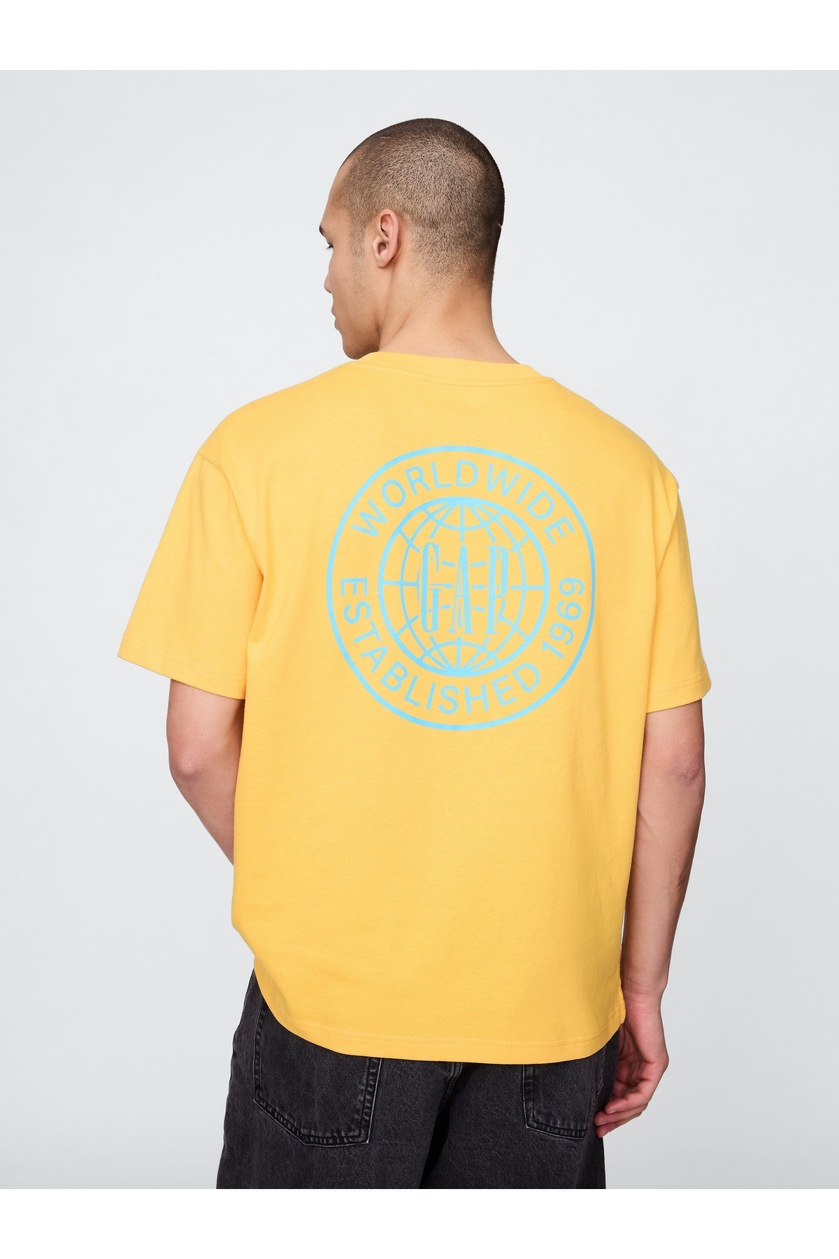 خرید اینترنتی تی شرت مردانه سایز بزرگ طرح لوگو زرد برند گپ GAP اورجینال از Gap نمایندگی ترکیه
