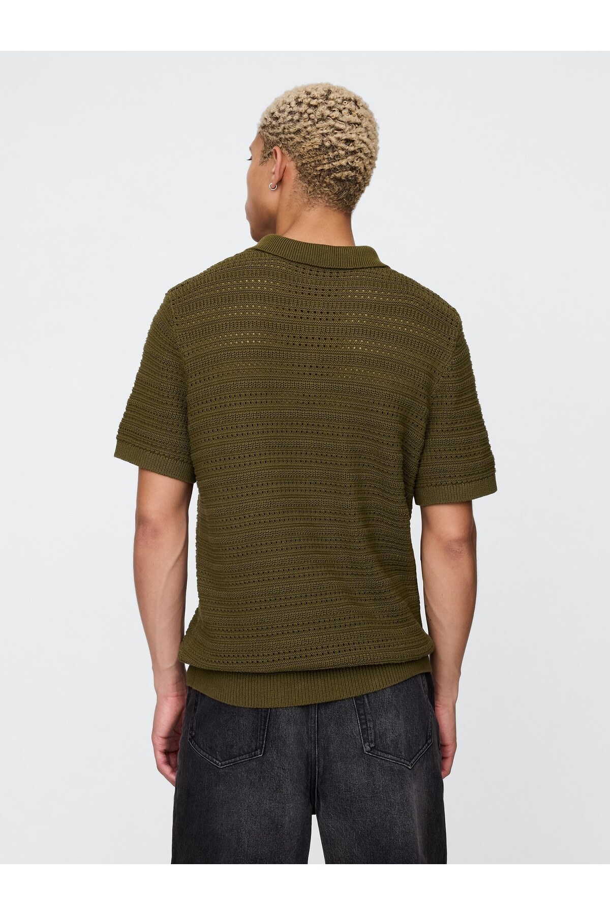 خرید اینترنتی تیشرت یقهدار بافتنی خاکی مردانه برند گپ GAP اورجینال از Gap نمایندگی ترکیه