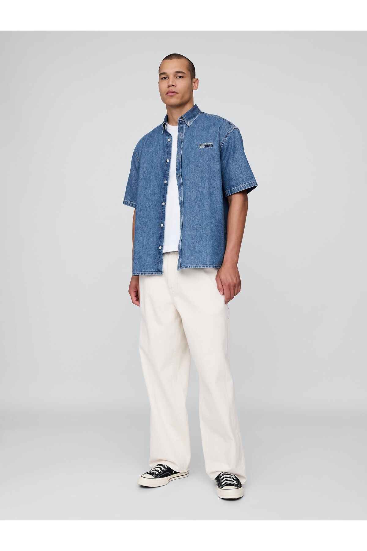 خرید اینترنتی پیراهن مردانه جین آبی لوگو دار طرح جین سایز بزرگ برند گپ GAP اورجینال از Gap نمایندگی ترکیه