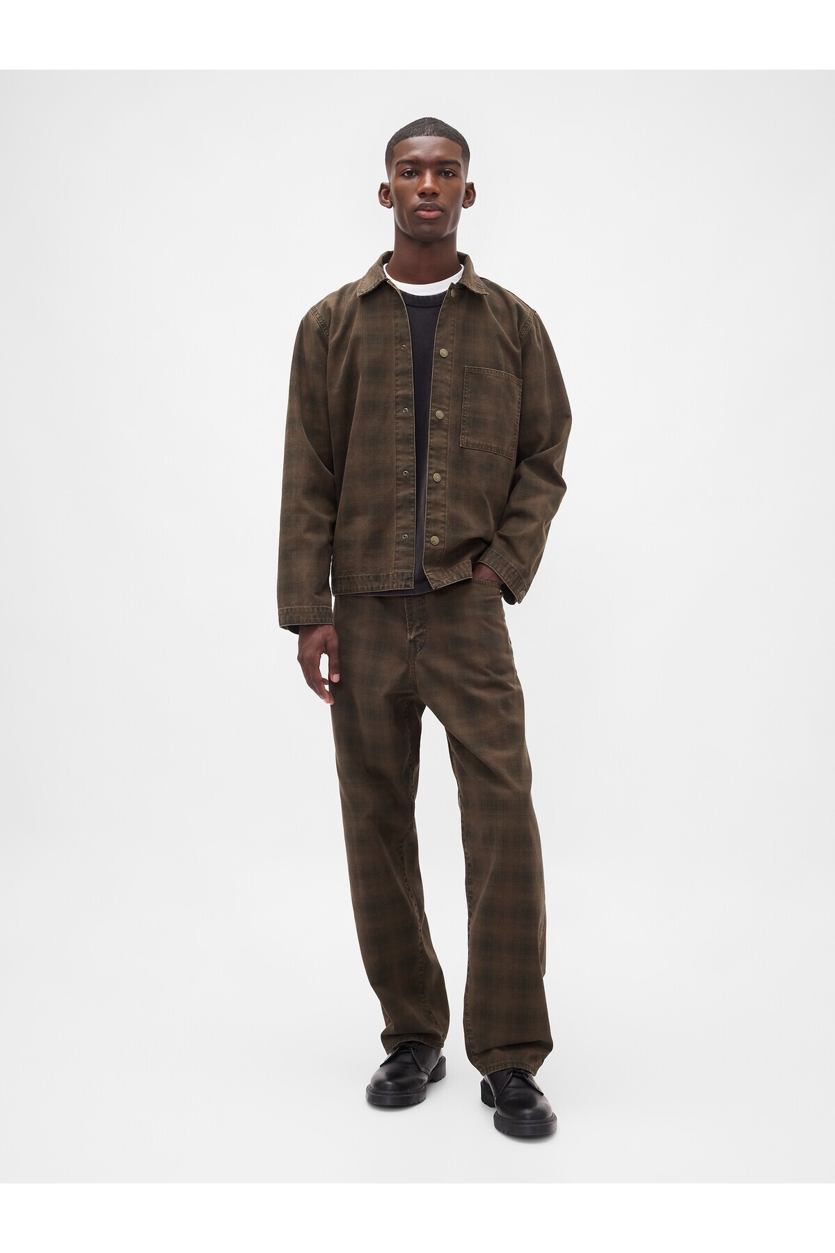 خرید اینترنتی پیراهن جین مردانه طرح چهارخانه قهوهای طرح بوم برند گپ GAP اورجینال از Gap نمایندگی ترکیه