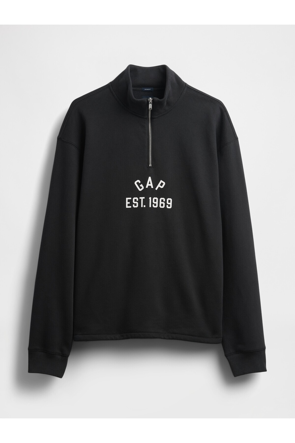 خرید اینترنتی سویشرت مردانه مشکی طرح VintageSoft سایز بزرگ با لوگوی نیم زیپ برند گپ GAP اورجینال از Gap نمایندگی ترکیه