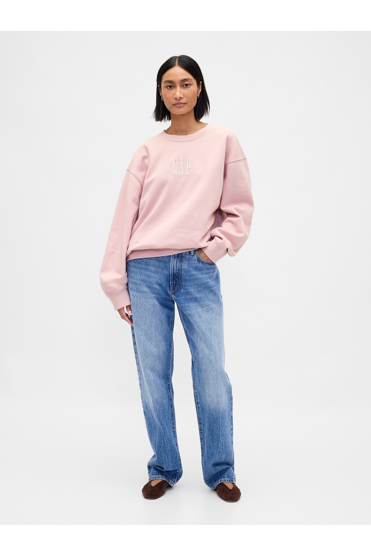 خرید اینترنتی سویشرت یقه گرد مردانه طرح لوگودار صورتی سایز بزرگ و سنگین برند گپ GAP اورجینال از Gap نمایندگی ترکیه