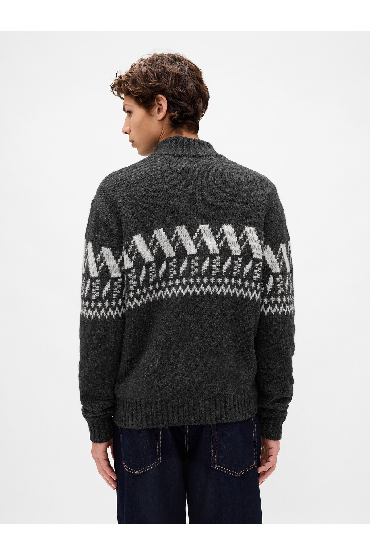 خرید اینترنتی ژاکت بافتنی زیپدار مردانه طرح ترکیبی پشمی خاکستری تیره برند گپ GAP اورجینال از Gap نمایندگی ترکیه
