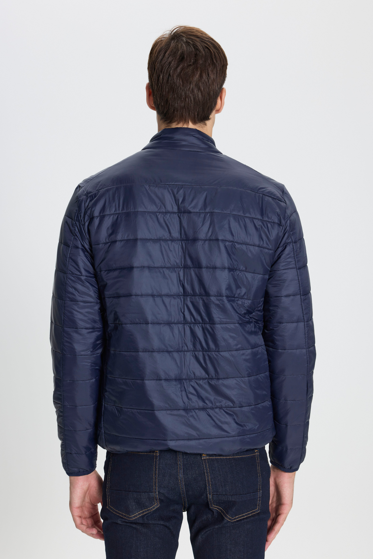 100% پلی استر، آبی سرمه ای ساده، تناسب استاندارد، یقه ایستاده، آستین بلند، جیب های کناری، مجموعه زمستانی، ژاکت فیبر گرم ضد باد فوق سبک جورج هنری پافر، اطلاعات مدل