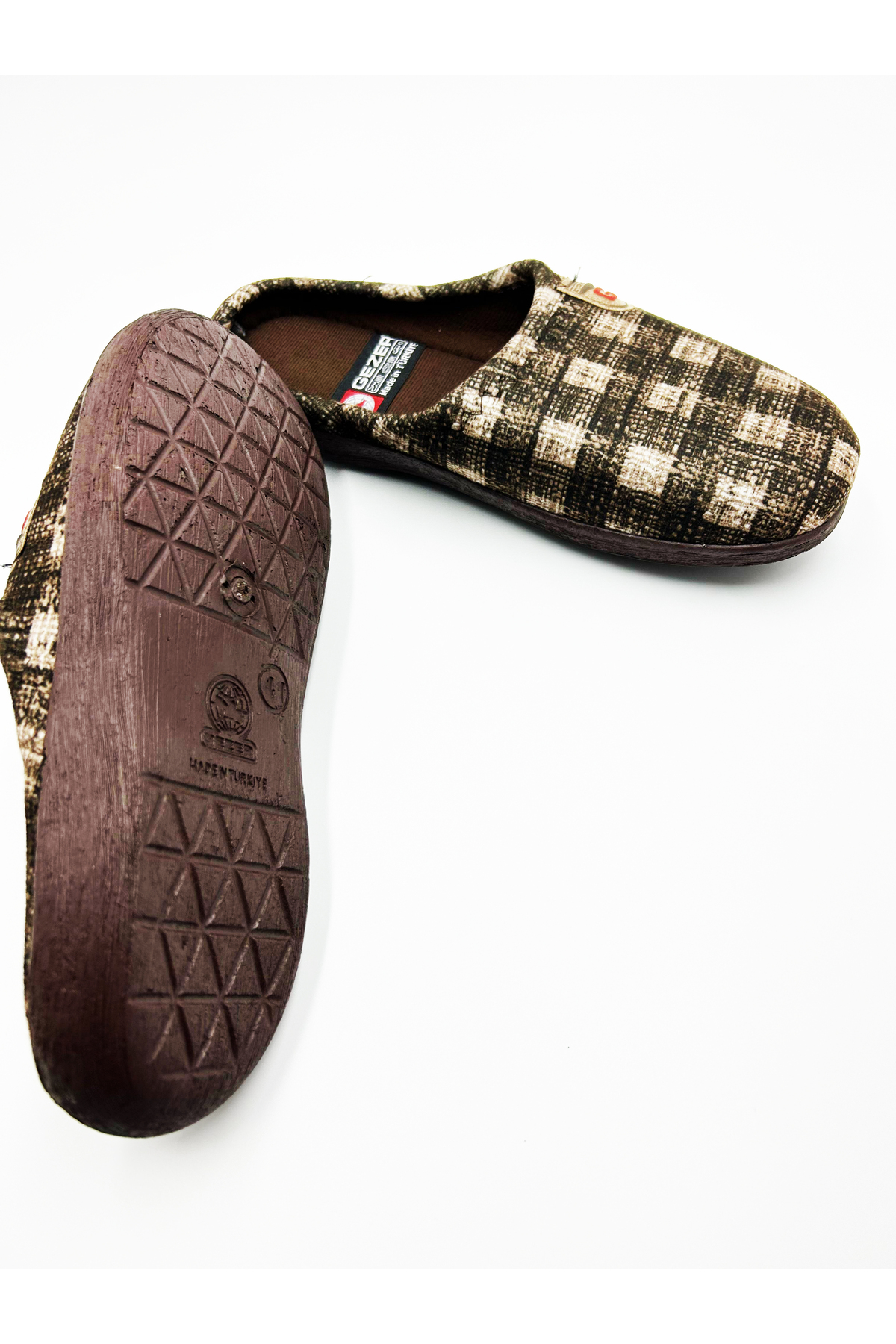 خرید اینترنتی دمپایی روفرشی زمستانی مردانه طرح دار قهوه ای قابل شستشو برند گزر Gezer اورجینال از ANATOLIAN نمایندگی و فروشگاه معتبر ترکیه