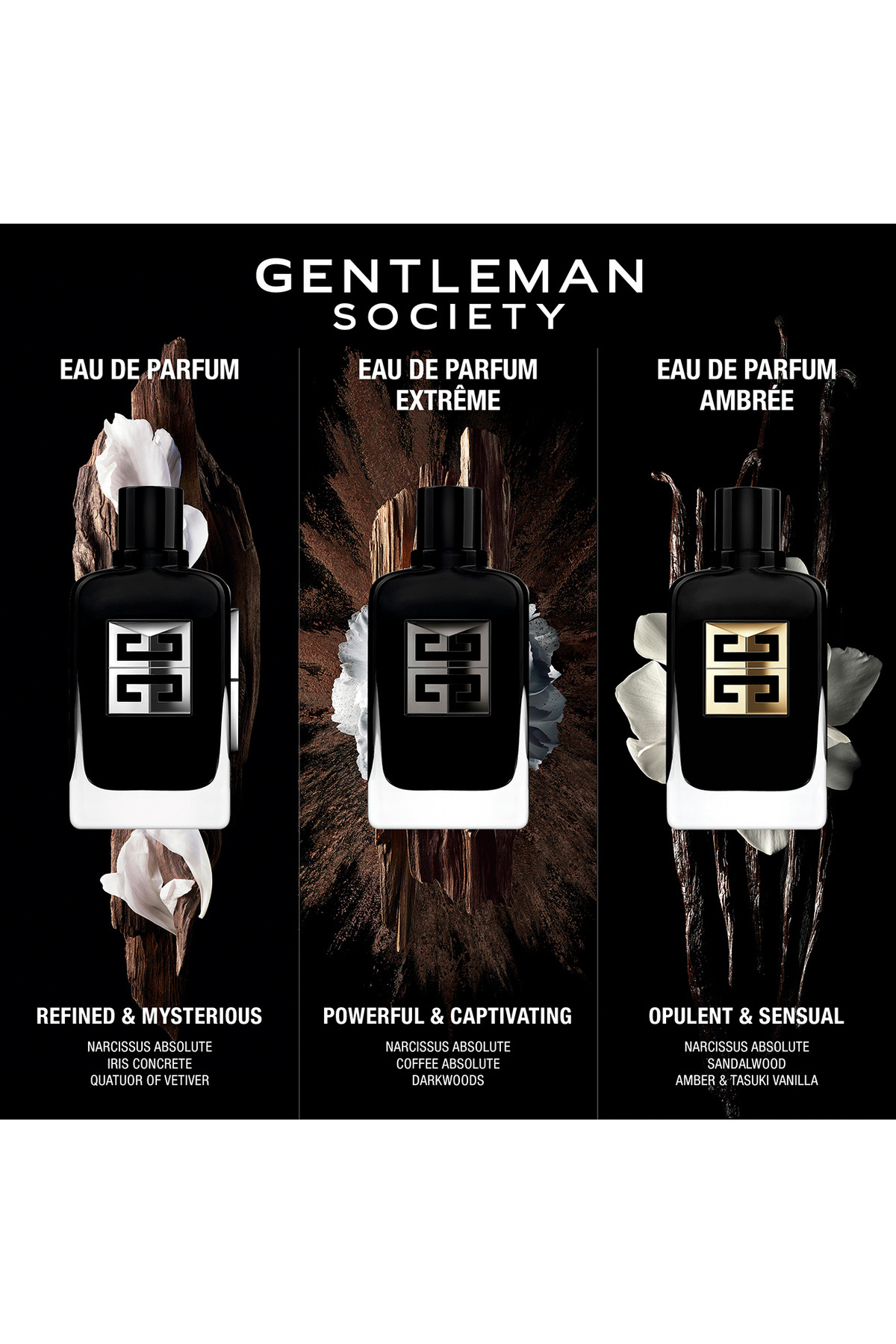 کاریزما را با Gentleman Society Ambrée کشف کنید. برای تجربه ای بی نظیر با Gentleman Society Ambrée، ادو پرفیوم چوبی، گل و عنبر Givenchy که با مواد اولیه عالی طراحی شده است، آماده شوید.