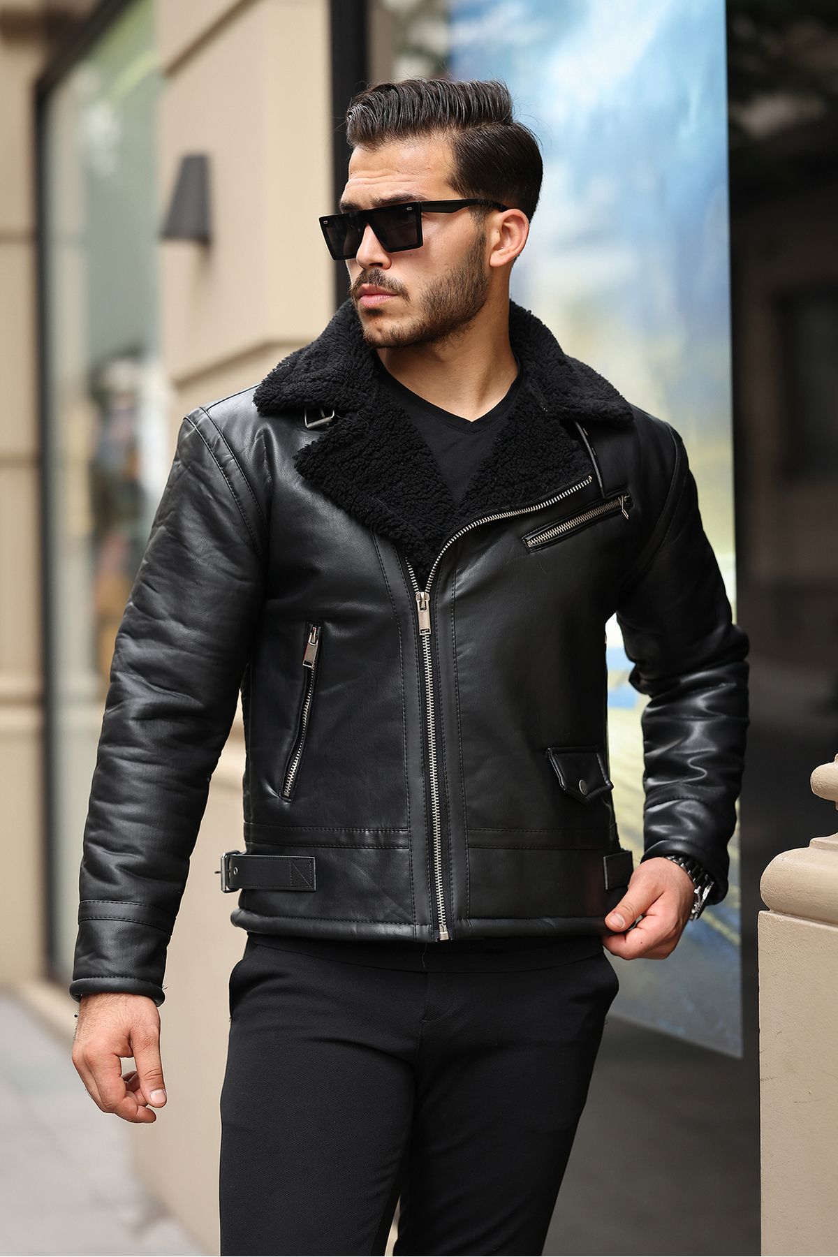 خرید اینترنتی کت و کت مردانه ناپا چرم باریک با زیپ مورب و آستر کامل خز برند gm giyimarket اورجینال از Wish Klein نمایندگی ترکیه