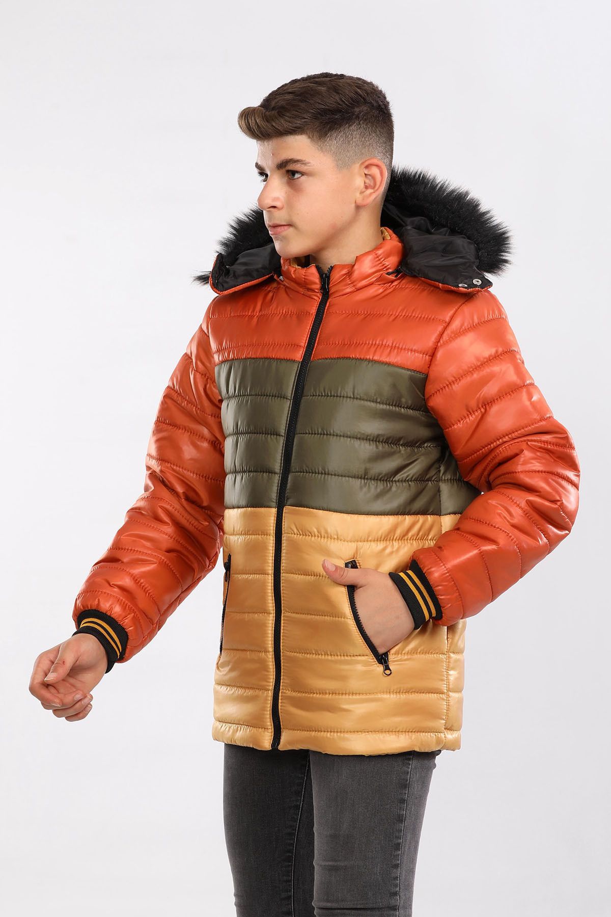 خرید اینترنتی کاپشن بچه‌گانه کلاه‌دار، آستردار، ضد آب، ضد باران و باد، مدل Mustard AVM147 برند Go Veform اورجینال از GoVeForm نمایندگی و فروشگاه معتبر ترکیه