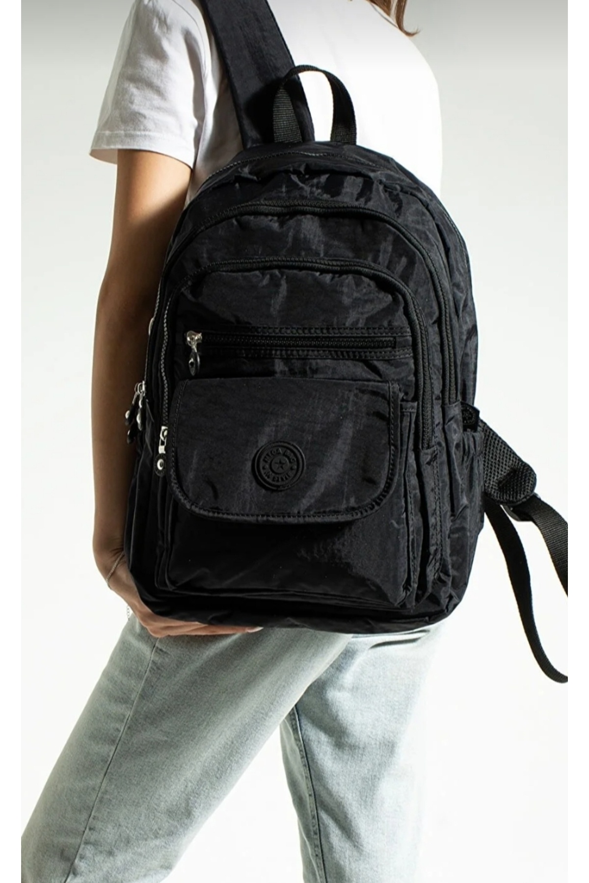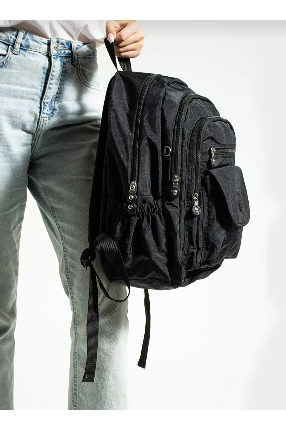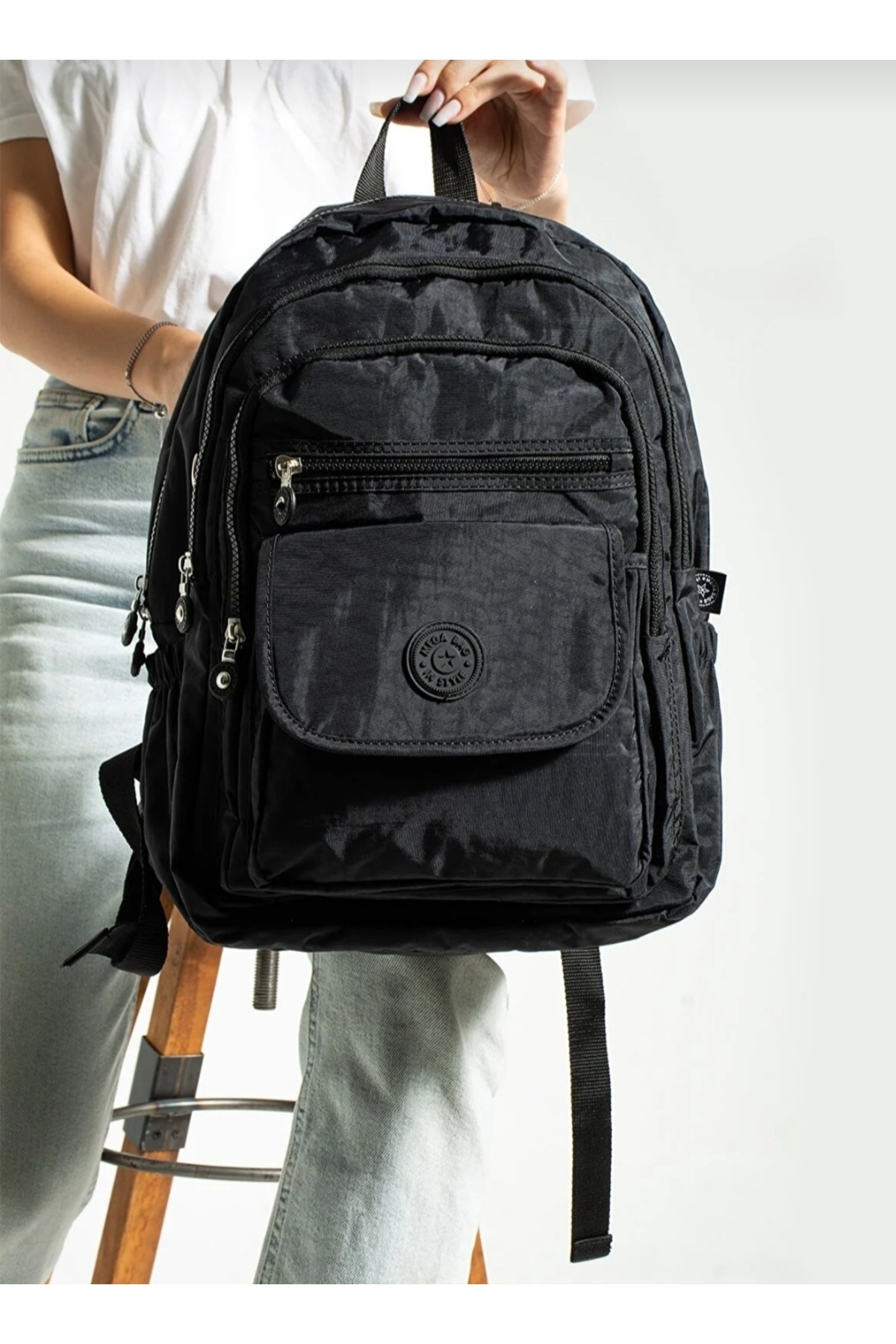 Tag: کوله پشتی/کیف مدرسه ای لپ تاپ مشکی چروک سایز بزرگ مقاوم در برابر آب از جنس پارچه چروک زنانه