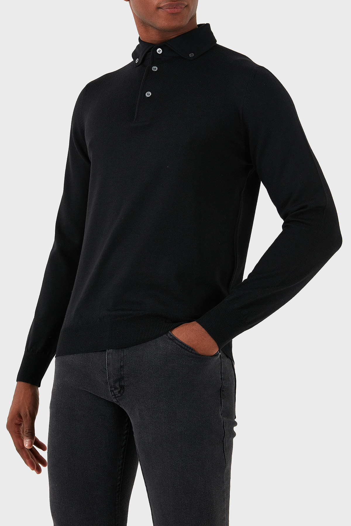 خرید اینترنتی پولو شرت مردانه یقه گرد دکمه دار ۱۰۰٪ پشمی اسلیم فیت، ۵۷۱۶۳ ۱۴۲۹۳ ۰۹۹ برند GRAN SASSO اورجینال از ExxeSelection نمایندگی ترکیه