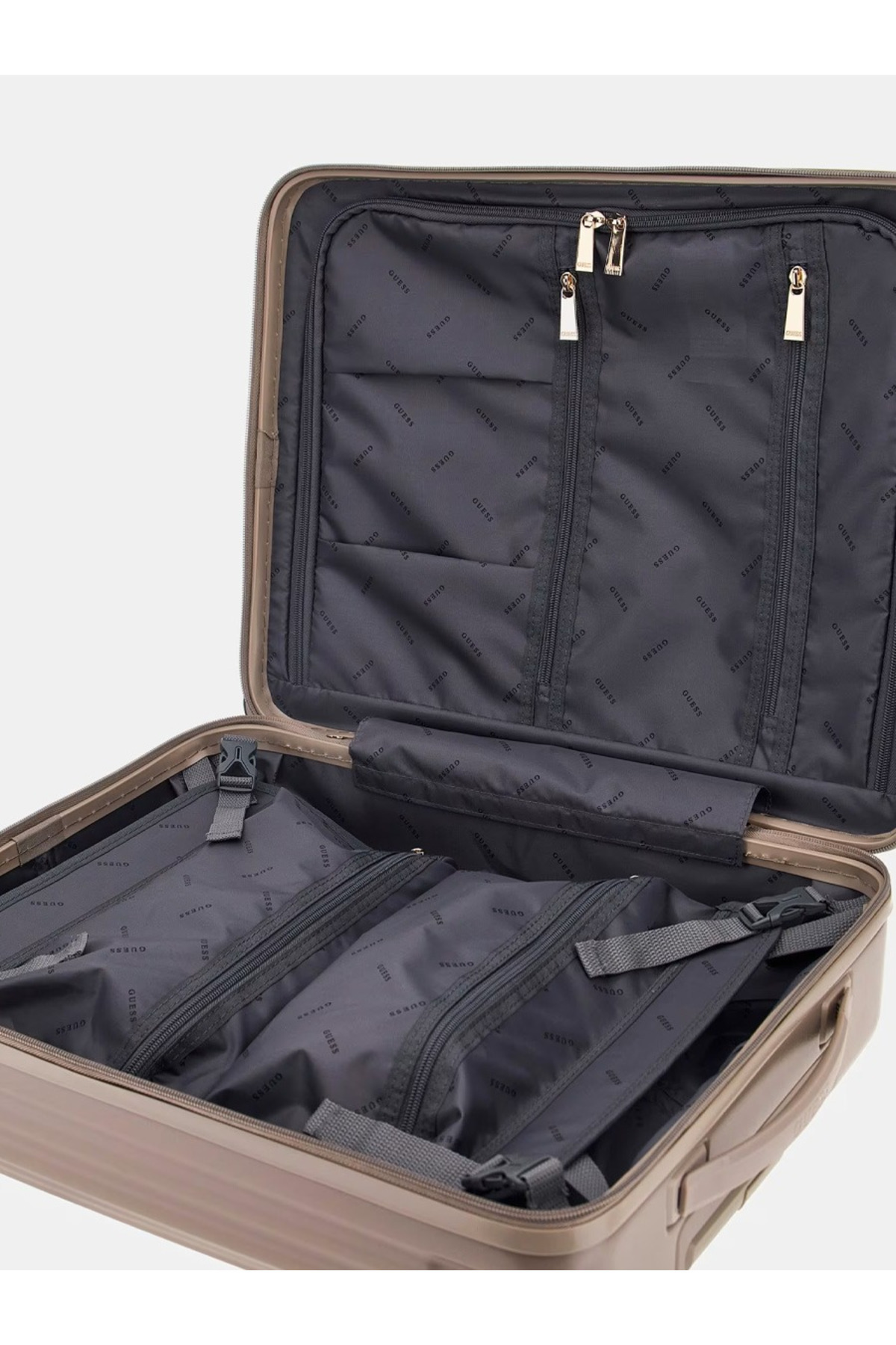 چمدان زنانه Guess Centennial به رنگ بژ و سایز کابین TWHN9675983-LCF