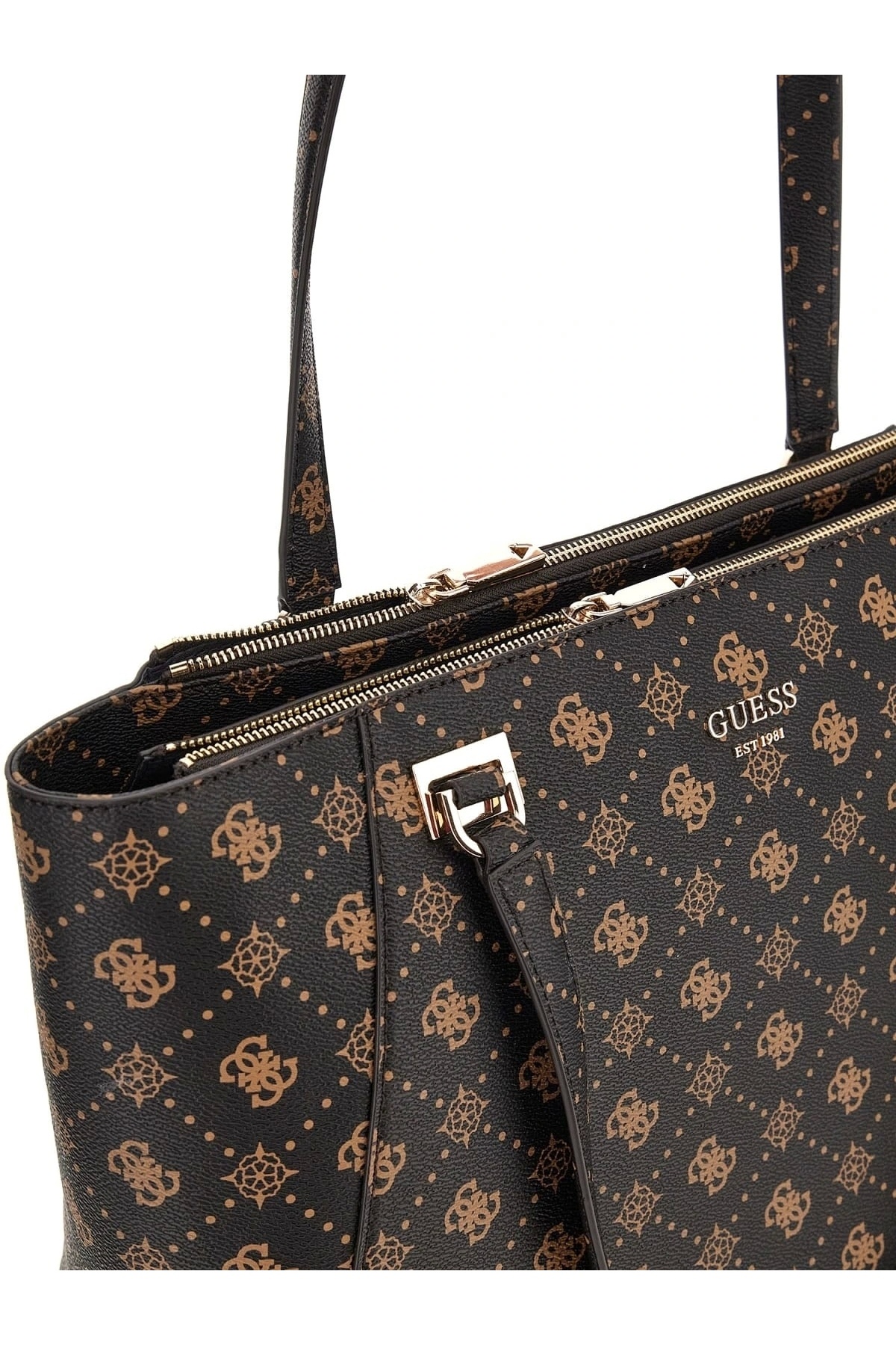 خرید اینترنتی کیف دستی زنانه طرح‌دار چند قسمتی طرح‌دار مونوگرام – قهوه‌ای برند گس Guess اورجینال از Kiviteks نمایندگی ترکیه