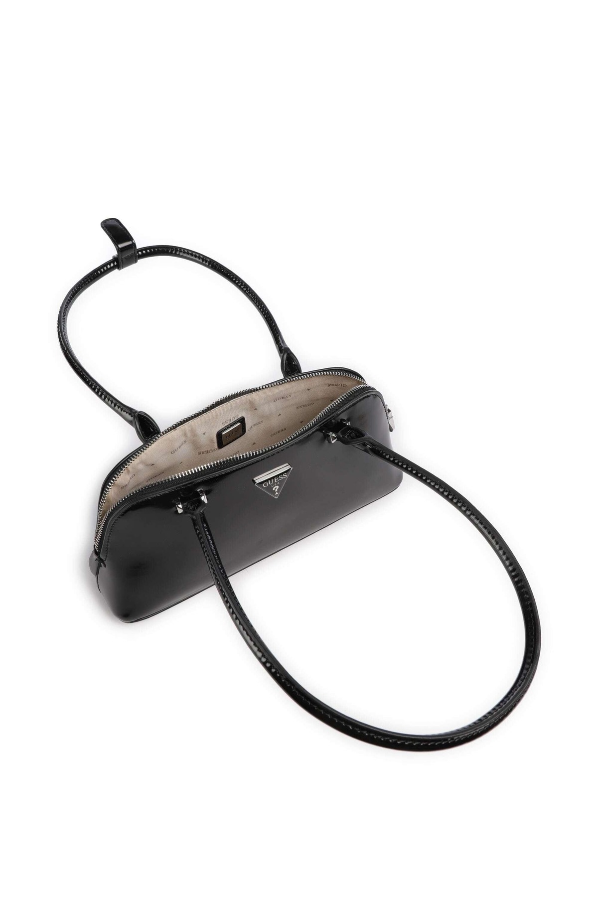 خرید اینترنتی کیف دوشی زنانه آرنلا با رویه براق – مشکی برند گس Guess اورجینال از MarkaPlus نمایندگی ترکیه