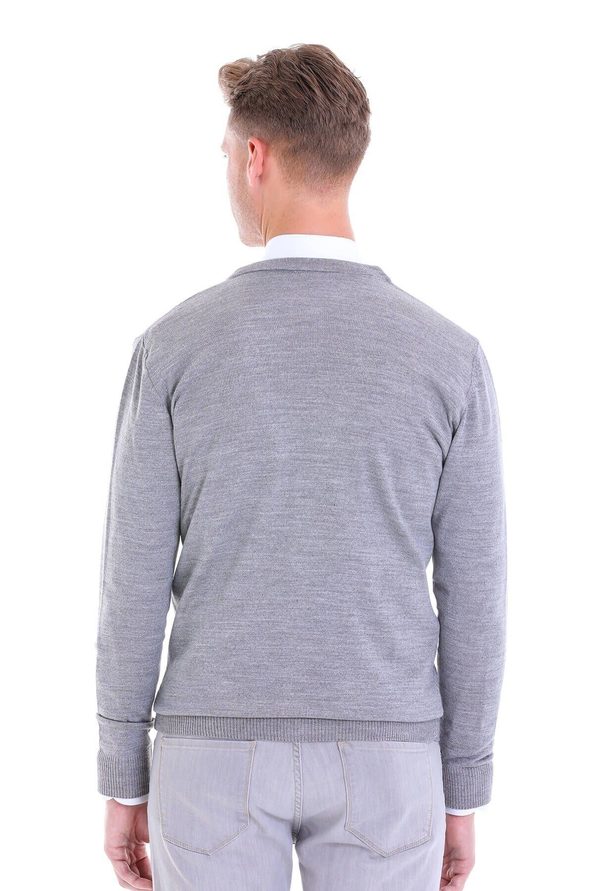 خرید اینترنتی ژاکت بافتنی یقه V ساده خاکستری Comfort Fit برند حاتم اوغلو Hatemoğlu اورجینال از Hatemoğlu نمایندگی ترکیه